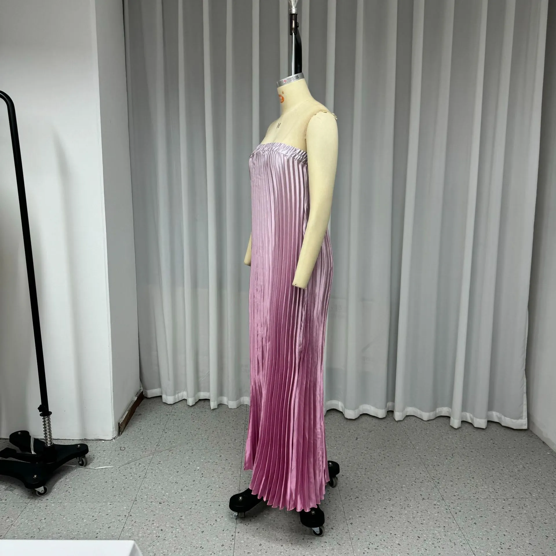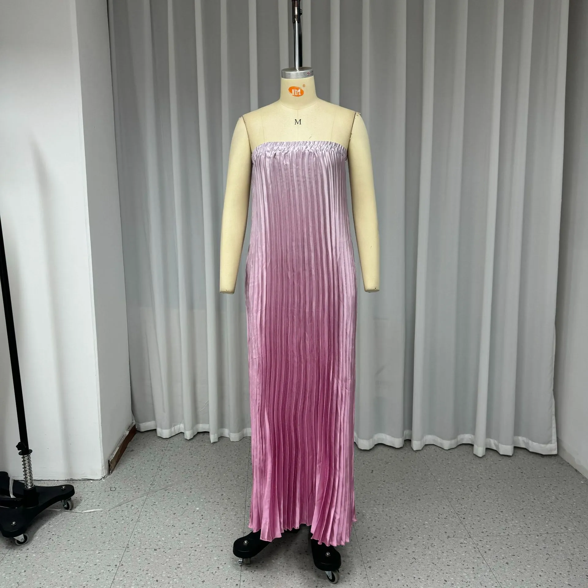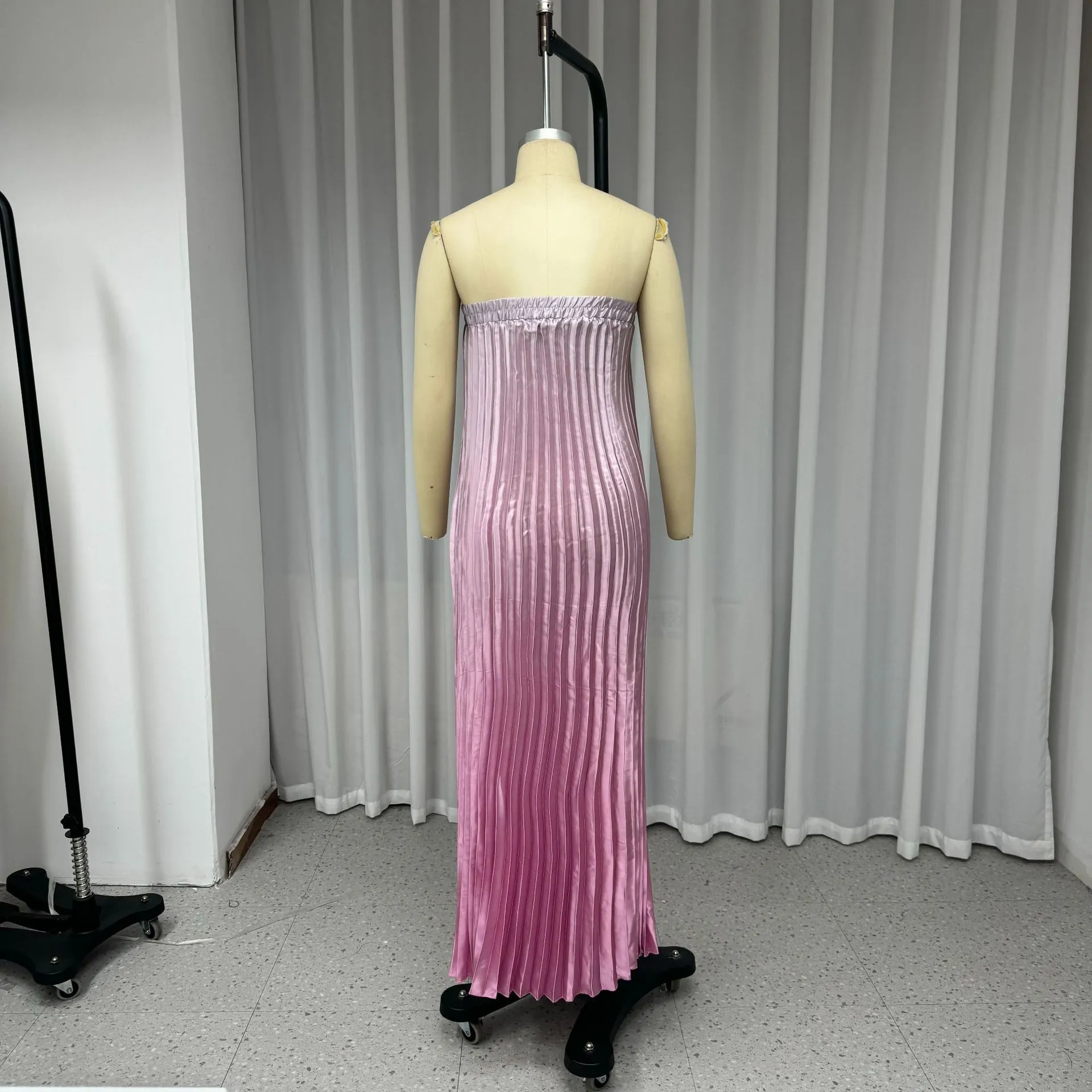 Fashion Sleeveless Tube Top Mermaid Color Pleated Dress