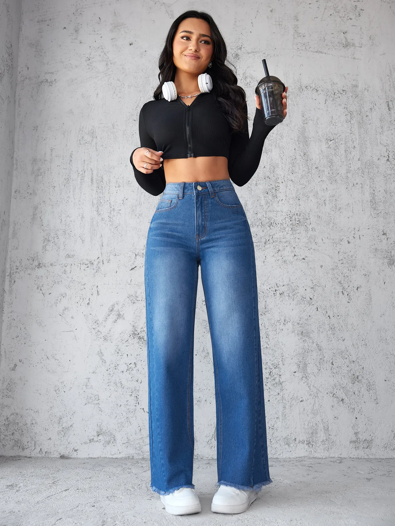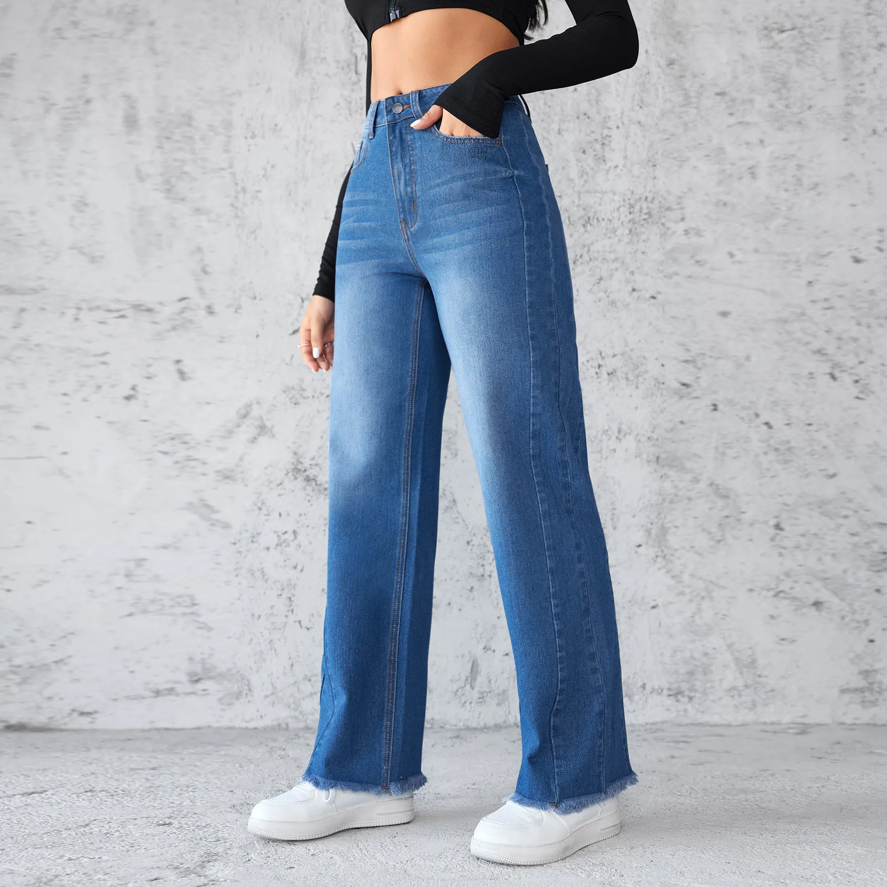 Discover the perfect blend of style and comfort with our Fashion Straight Wide-leg Jeans. These high-waist, non-elastic jeans are designed for women who appreciate both fashion and functionality. Whether you're dressing up for a night out or going for a casual day look, these jeans offer a versatile option that fits any occasion.