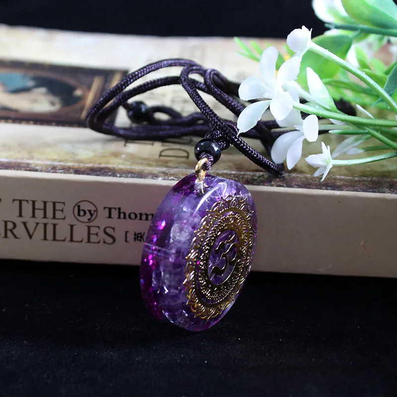 The crystal gravel featured in the necklace adds a natural and textured element that makes each piece unique. Crystal gravel refers to small chunks of semi-precious stones or crystals that have been carefully selected and integrated into the design. The crystals come in a variety of colors, from vibrant hues of blue and green to subtle earth tones, giving the necklace a dynamic and organic appearance.These crystal pieces are embedded into the resin, offering a stunning contrast that is both visually appealing and full of energy. The natural variations in the crystals ensure that no two necklaces are exactly the same, adding a sense of individuality to each piece. The texture and color of the crystal gravel make the necklace a striking focal point in any outfit.