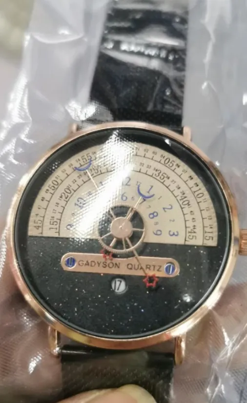 - Break with tradition: the dial of this watch has half disc design, the red star and the blue moon correspond in the starry sky, the gear in the middle never stops, and it will always be the most beautiful landscape on your wrist!
