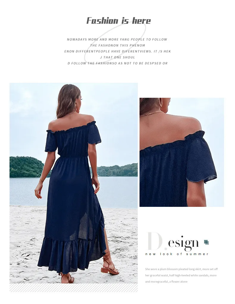In conclusion, the Fashion Women's Wear Off-Shoulder Ruffle Sleeve Irregular Dress is the perfect blend of sophistication and modern style. The off-shoulder neckline, ruffle sleeves, and irregular hemline create a chic and flattering look that suits a variety of occasions. Made from high-quality, breathable fabric, this dress ensures both style and comfort, making it ideal for warm weather or semi-formal events. Whether you’re attending a brunch, a party, or a night out, this dress is a versatile and fashionable option that keeps you looking chic and feeling confident.