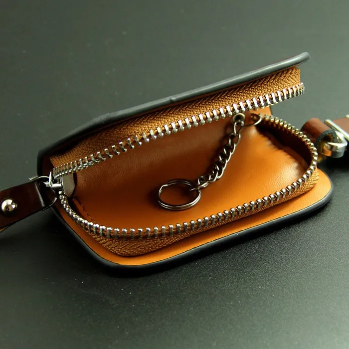 Crafted from high-quality genuine leather, this key case offers a luxurious look and feel. The sleek zipper closure ensures your keys remain secure, while the soft leather provides a comfortable grip. Its elegant design makes it a stylish accessory for both men and women.