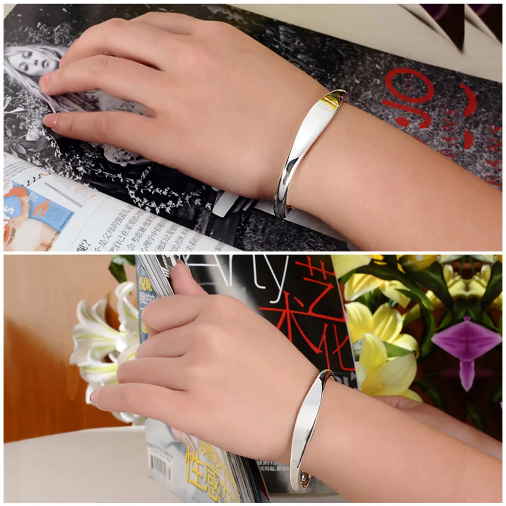 Fashionable Simple Glossy Bracelet 925 Silver Plated Men And Women Couple Bracelets