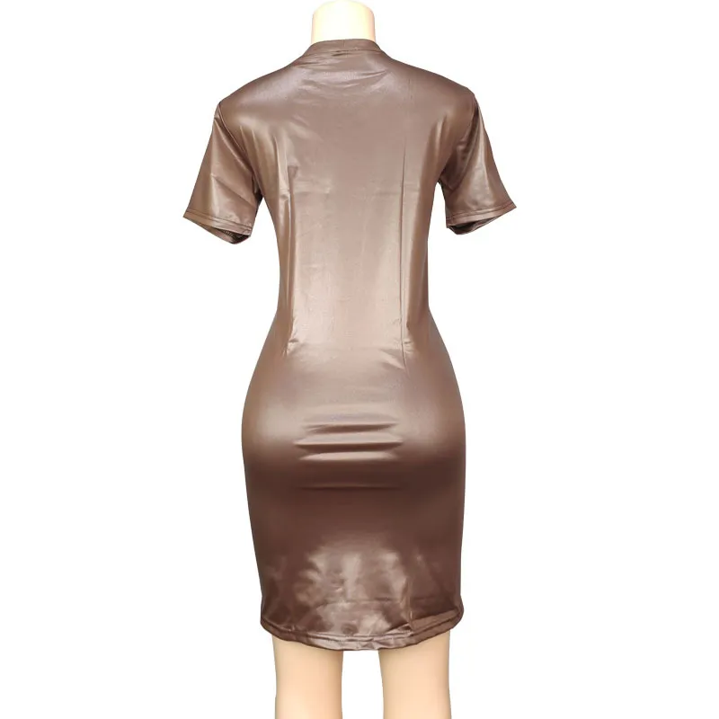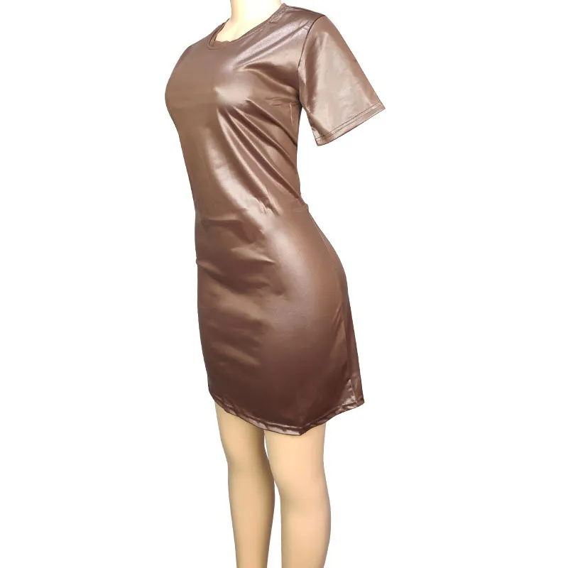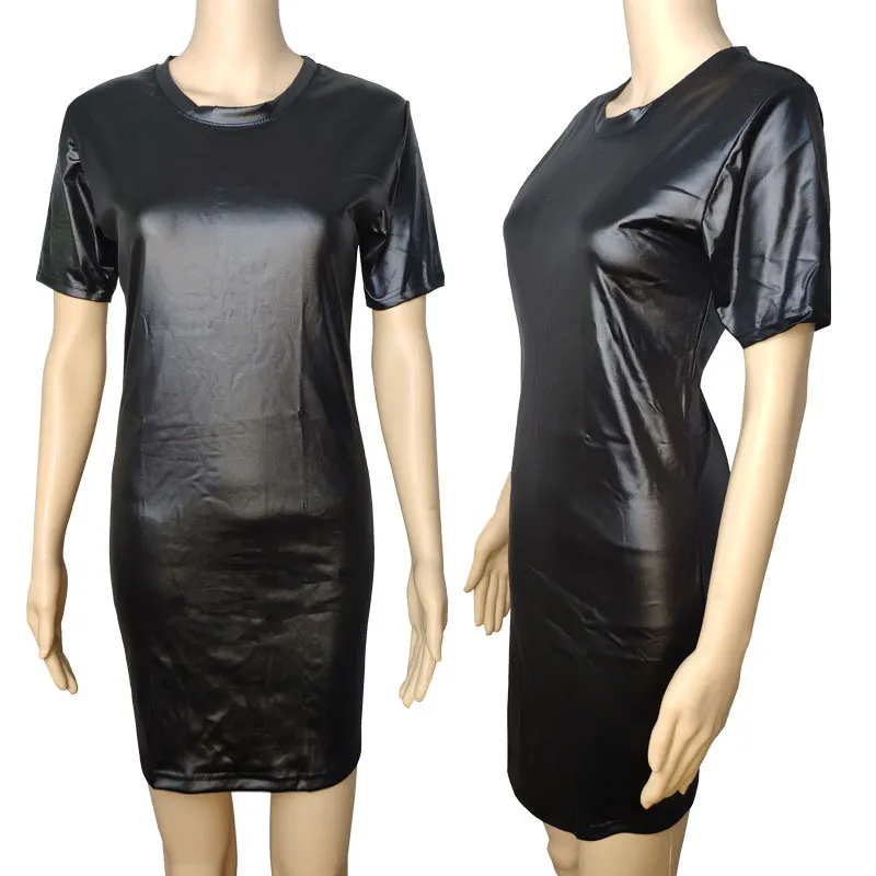 The Faux Leather Long Sleeve Round Neck Knee Sheath Tight Dress exudes elegance and confidence, making it a standout piece for any special occasion or night out. This figure-hugging sheath dress is designed to flatter your curves, with its sleek faux leather fabric offering a bold, contemporary look. The long sleeves and round neck add a touch of sophistication, making it both chic and daring.