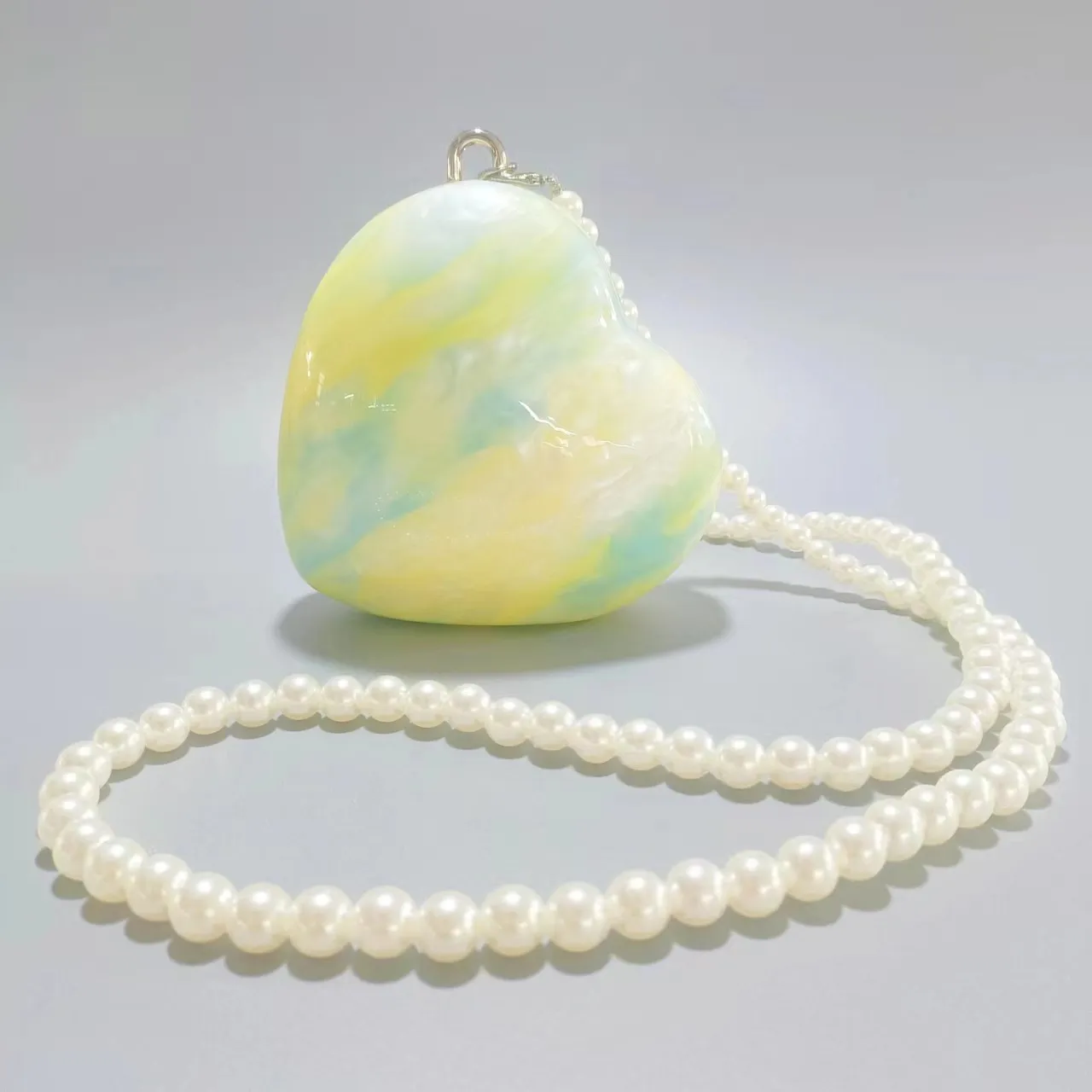 The heart-shaped silhouette and polished acrylic finish make this bag a bold and stylish choice for women who love creative fashion.