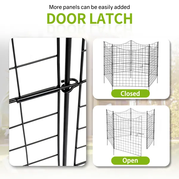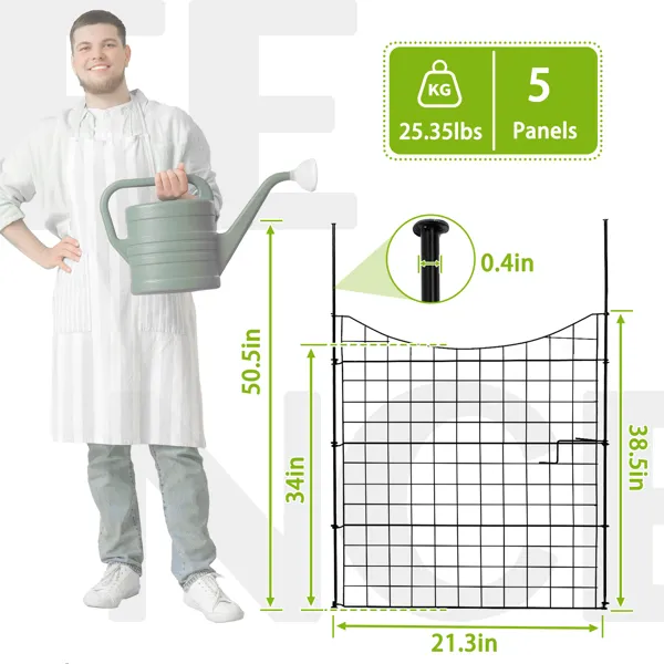 2. Flexible 5-Panel Set: Includes four panels and a gate measuring 39" H x 36" W that can be easily configured to fit gardens, pathways,
