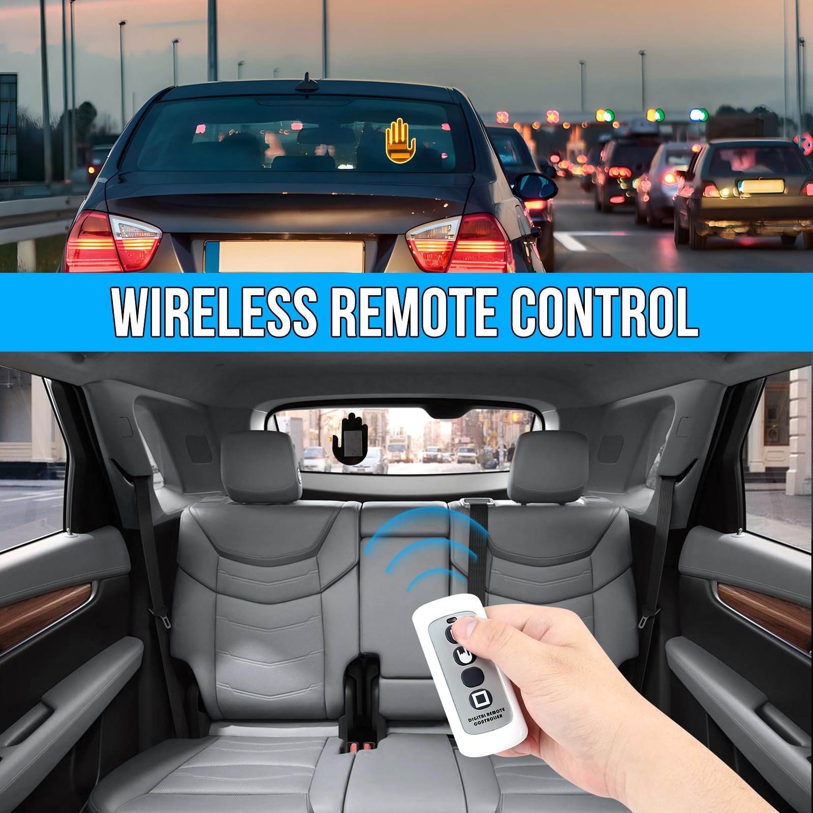Wireless Control: Easily switch between gestures with the included wireless remote, which works up to 82 feet away. This nifty gadget grabs attention quickly and enhances communication with other drivers, making it a cool gift for anyone.