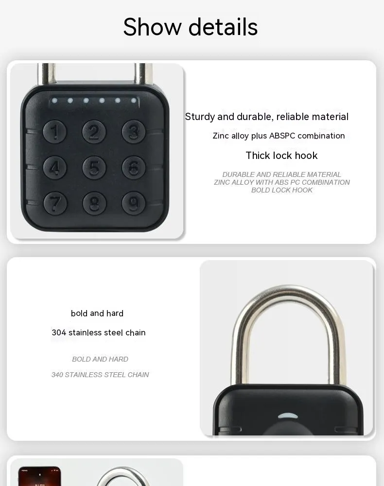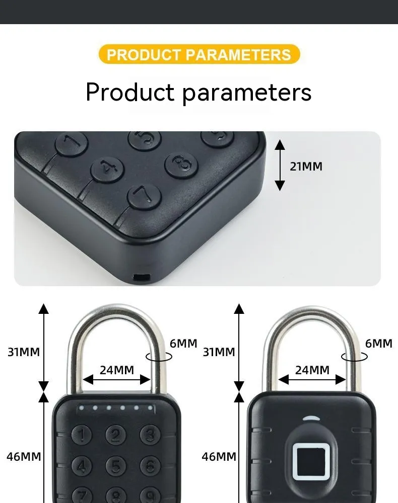 Upgrade your security with the Fingerprint Smart Padlock, a cutting-edge solution for safeguarding your home and valuables. This innovative padlock utilizes advanced biometric technology, allowing you to unlock it with a simple touch of your fingerprint—no keys or combinations needed. Designed with convenience in mind, it stores up to 15 fingerprints, making it perfect for shared access among family members or trusted individuals. The padlock also supports password unlocking and can be managed remotely via a dedicated mobile app, providing you with flexible control over your security settings.