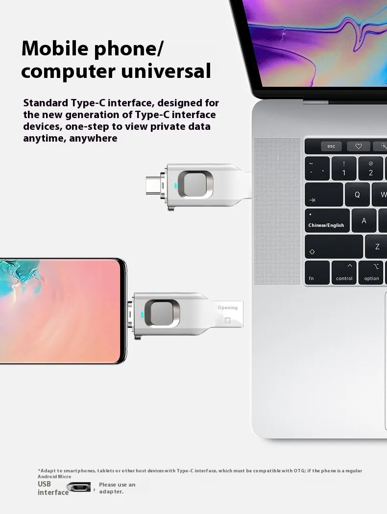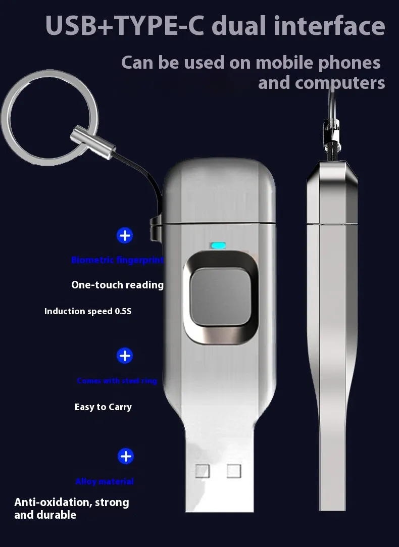 Fingerprint USB Disk Encrypted Data Security Computer Cellphone Dual-use