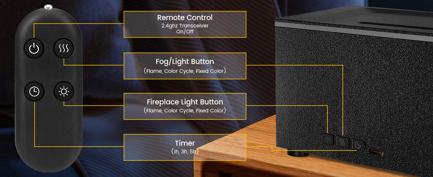 This diffuser is designed with safety in mind. It features an automatic shut-off function that kicks in when the water level is low, preventing any risk of overheating. The easy-to-use control buttons allow you to adjust the settings for the ideal mist output and lighting intensity. With a simple setup and hassle-free operation, the Fireplace Oil Diffuser is a perfect addition to your wellness routine.