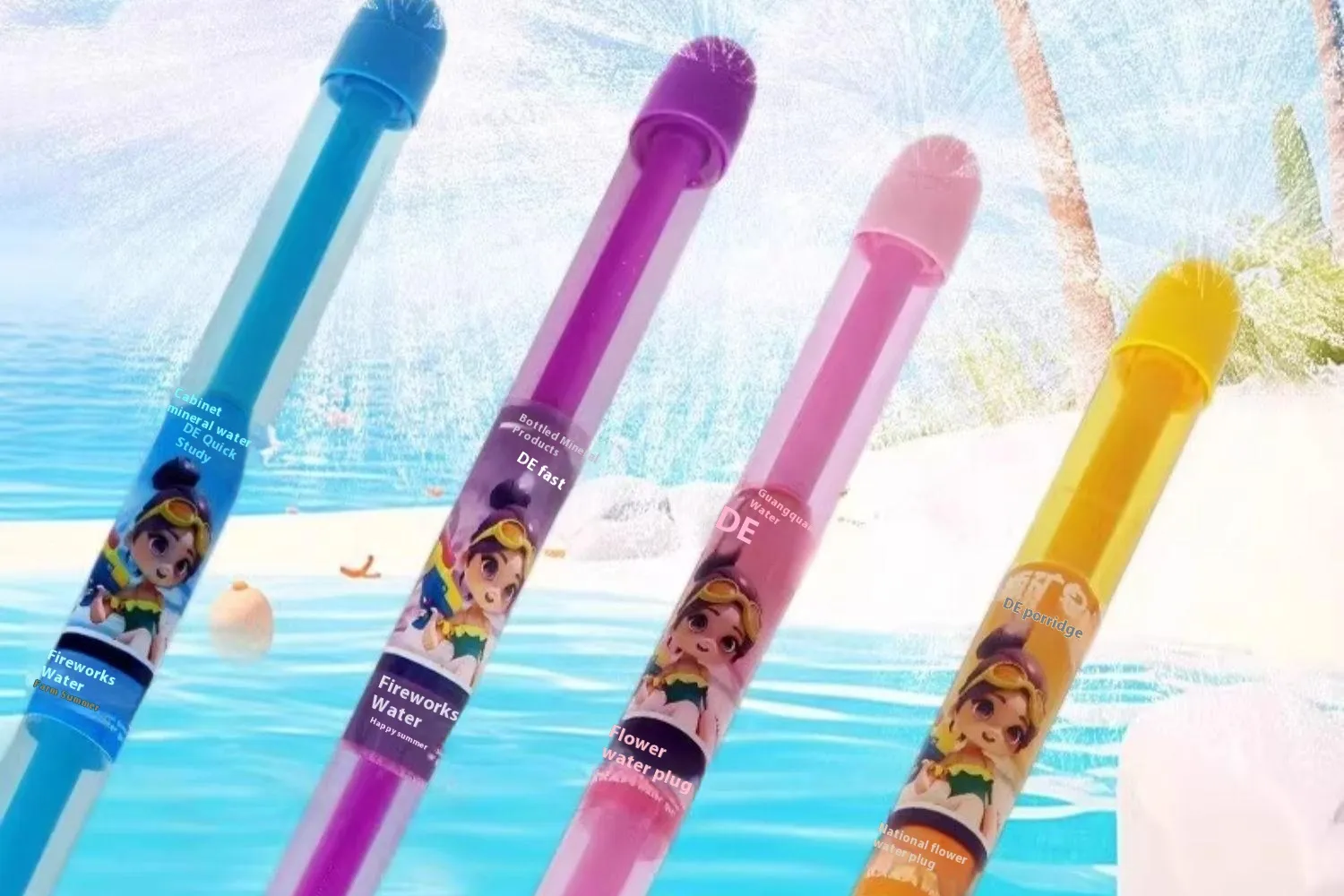 Specifications: Fireworks water gun-pink [one], fireworks water gun-blue [one], fireworks water gun-purple [one], fireworks water gun-yellow
