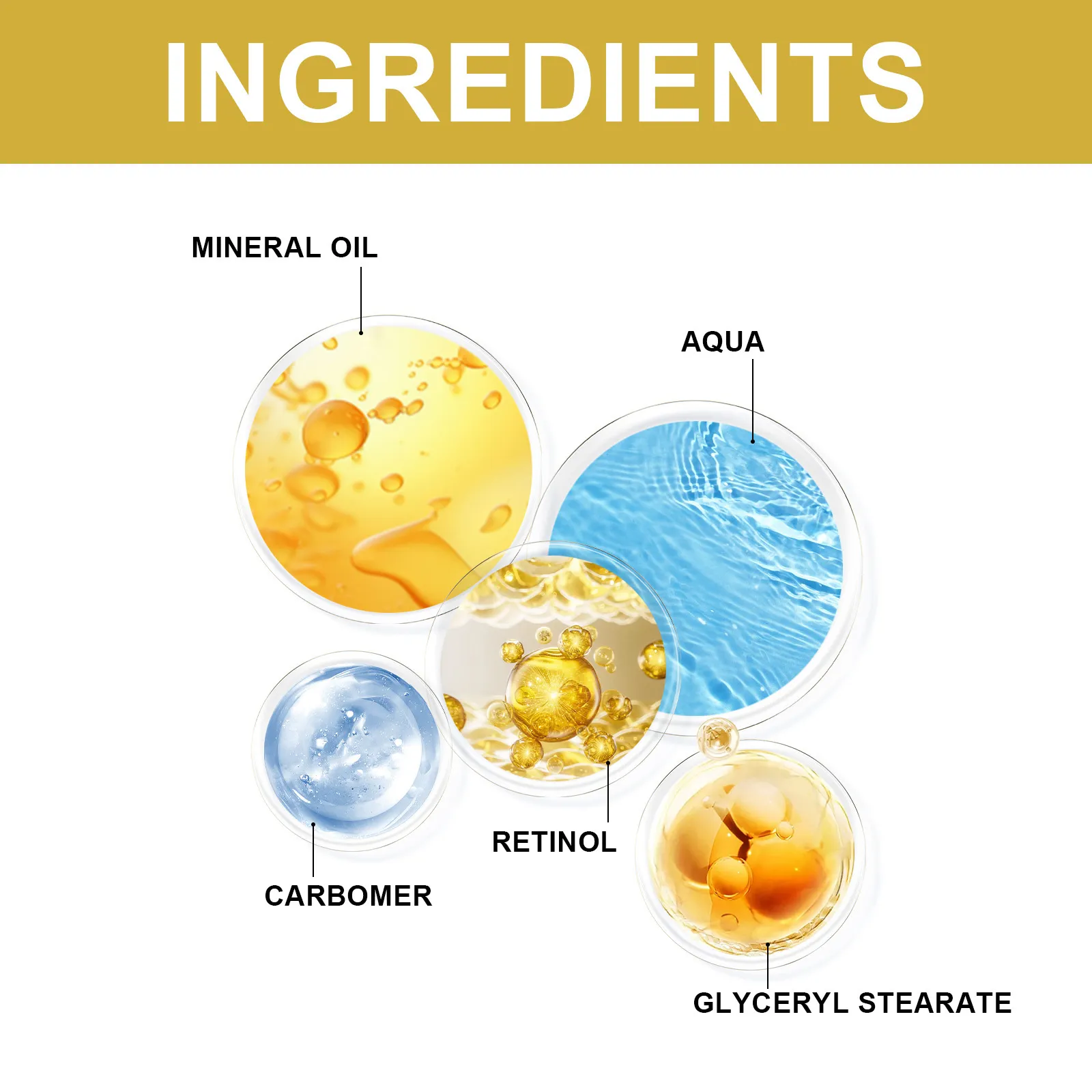 Ingredients: water, mineral oil, Glyceryl stearate, carbomer, Oligopeptide-1, Retinol