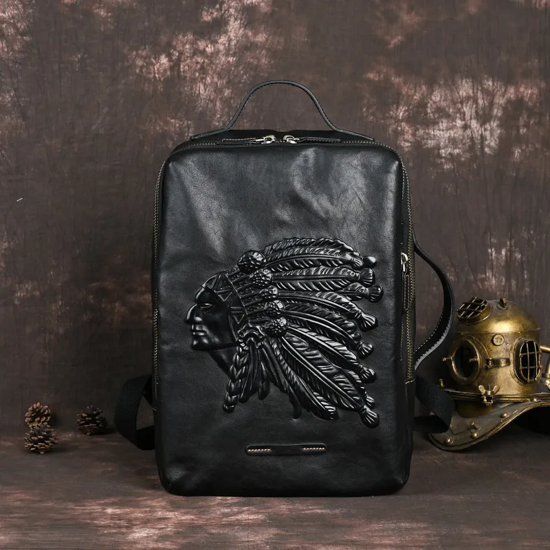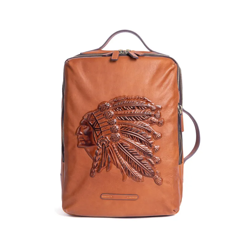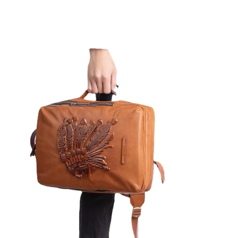 first-layer cowhide leather. Designed for durability, style, and functionality, this backpack seamlessly combines traditional craftsmanship