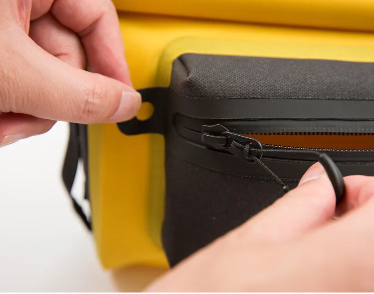 - A main waterproof compartment for essentials like phones, wallets, and small tools.
