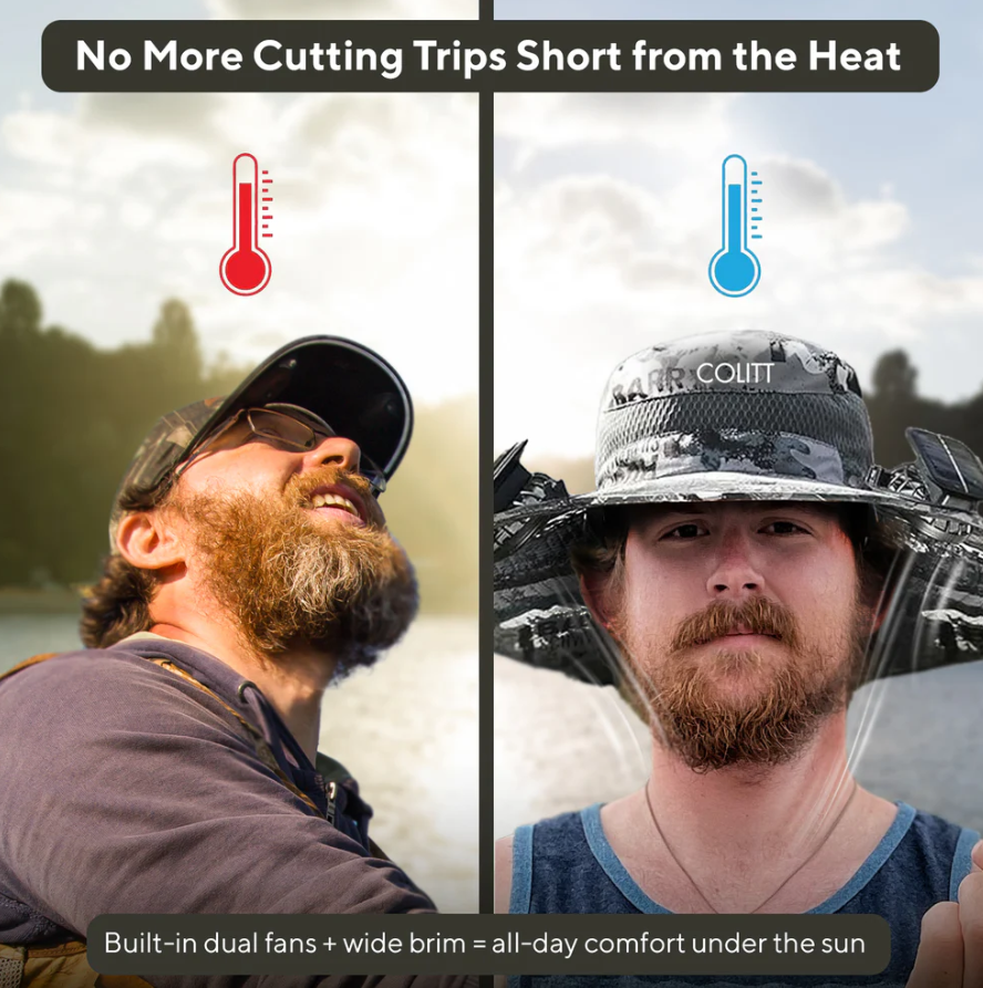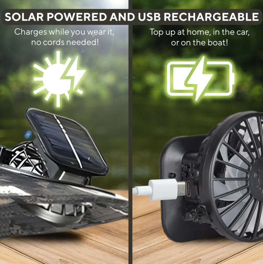 Hands-free cooling: Unlike handheld fans, this design lets you stay cool while keeping your hands free for fishing rods,