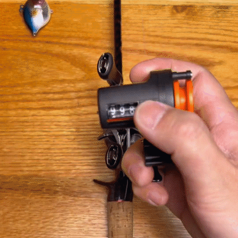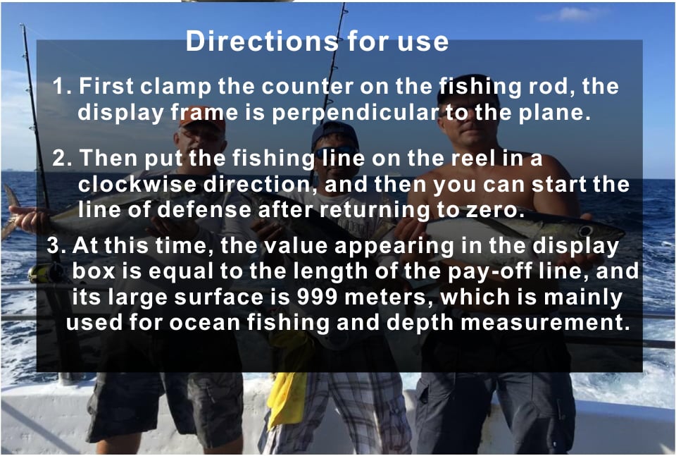 1. First clamp the counter on the fishing rod, the display frame is perpendicular to the plane.