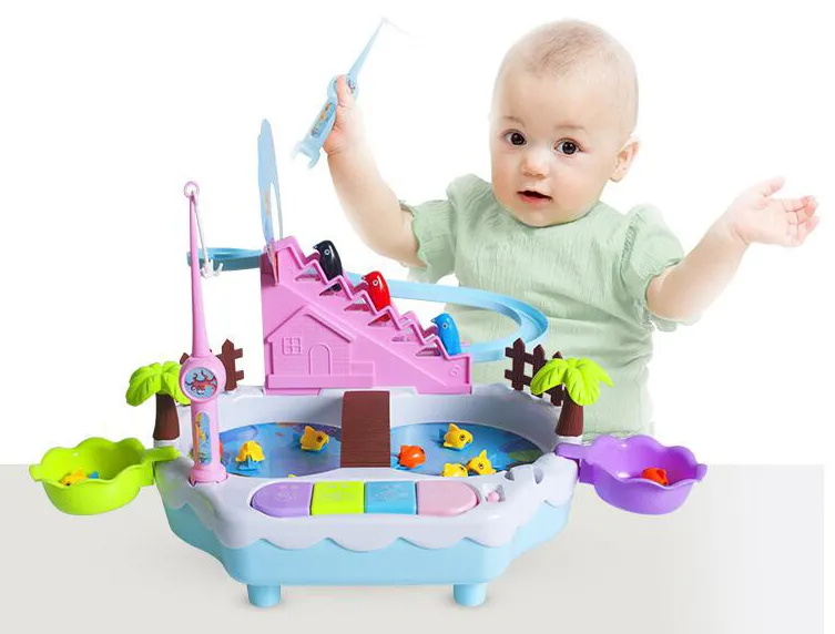 Electromagnetic fishing toy 3-6 years old penguin climbing stairs music lighting play interactive educational toys