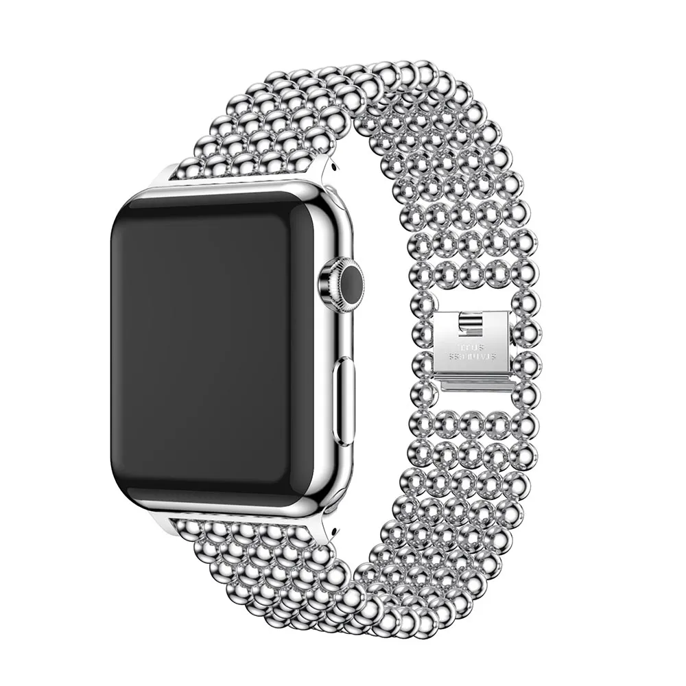 Five Beads Round Design: The strap features five round beads strategically placed on the metal strap,