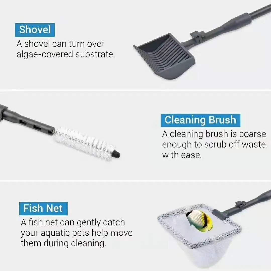Regular cleaning of your fish tank with the Five-In-One Six-In-One Fish Tank Brush Cleaning Tool helps remove algae, dirt, and debris that can affect the water quality. Cleaner surfaces mean better oxygen flow and overall water quality, which is essential for the health and well-being of your fish and aquatic plants.
