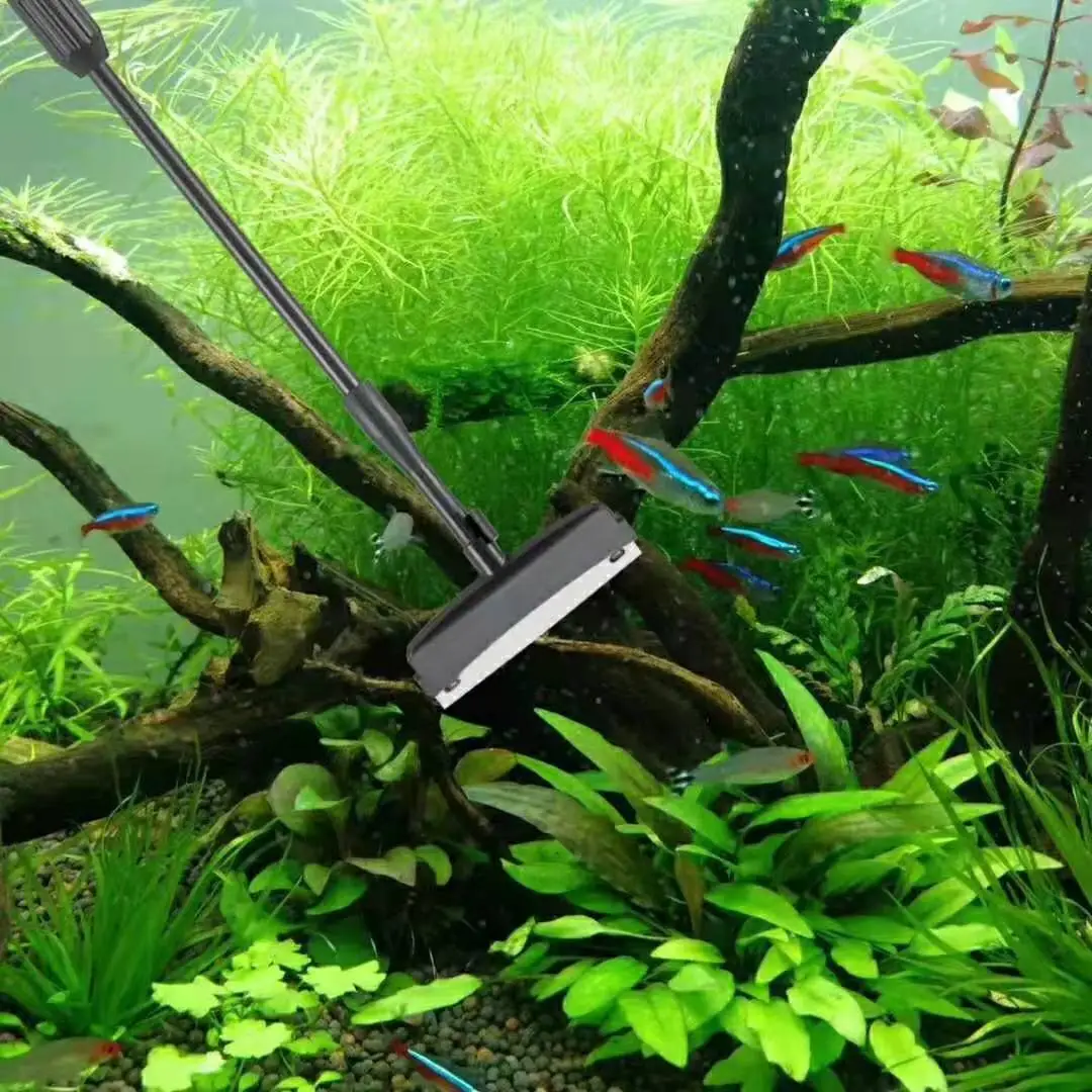This multifunctional cleaning tool kit is specially designed for glass aquariums and has an extra-long handle to help keep your aquatic