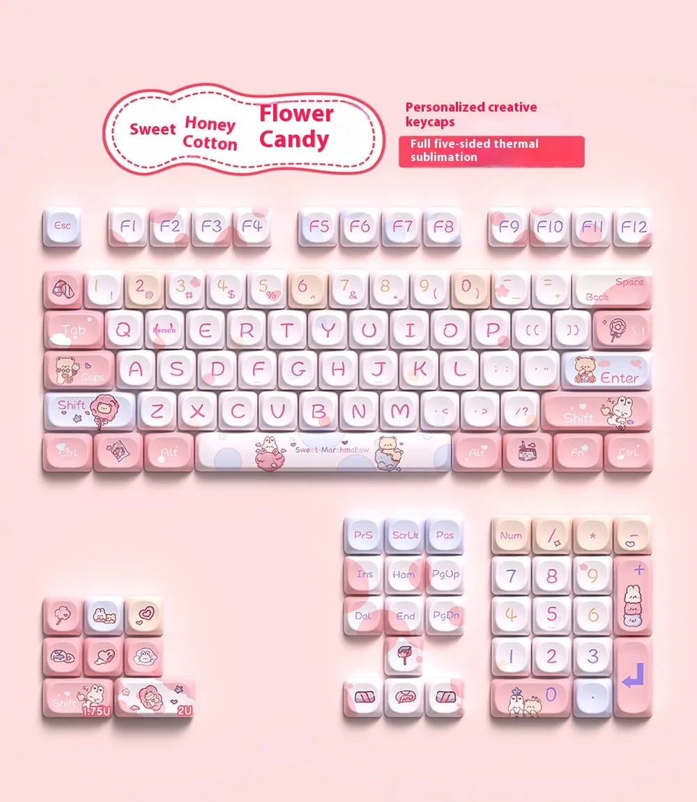 Upgrade your mechanical keyboard with cute, five-sided dye-sublimation PBT keycaps in MOA/Cherry profile. Full-wrap design and quality build