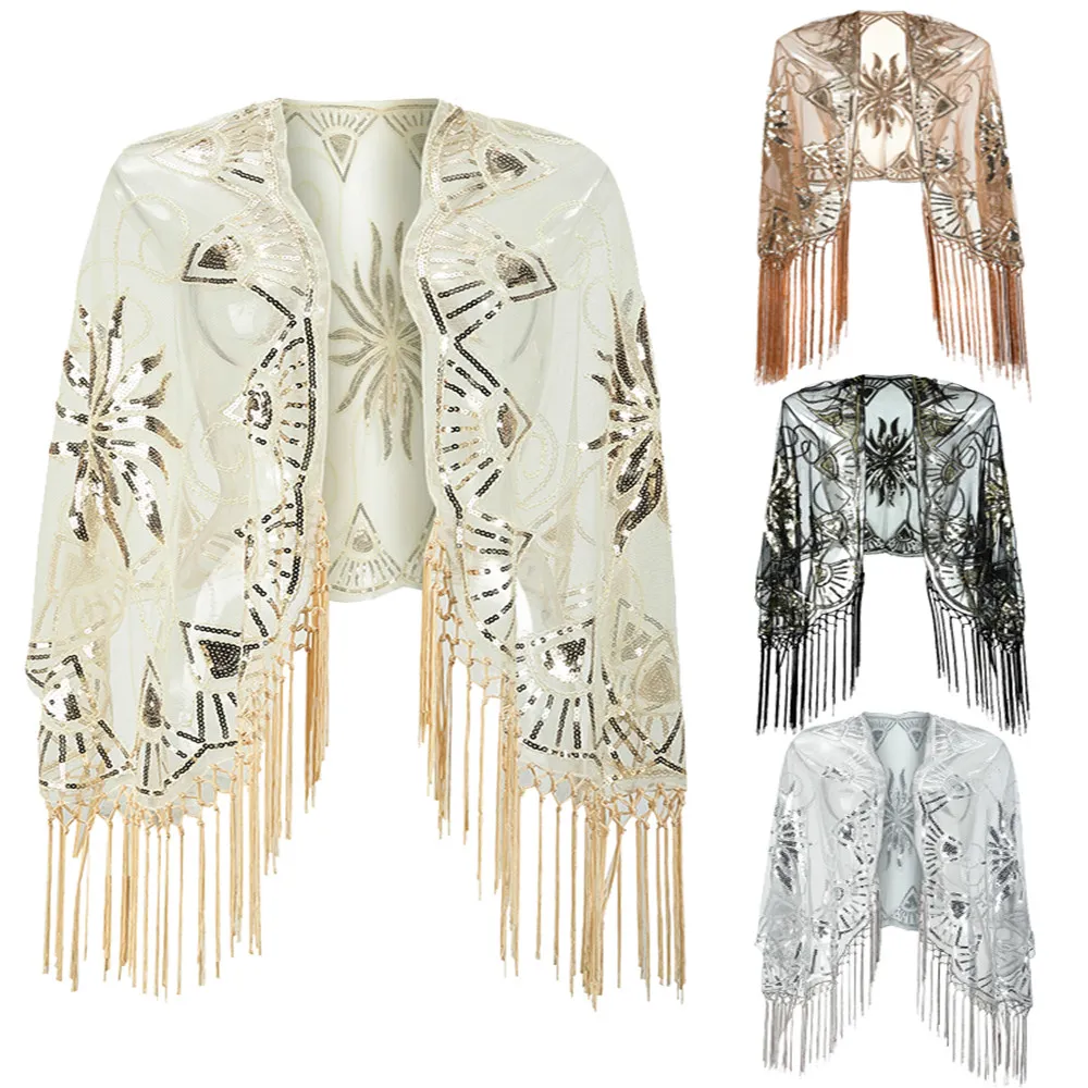 Whether you're attending a Great Gatsby-themed party, a retro soirée, or any special occasion that calls for vintage glamour, this short cover-up dress accessory enhances your outfit with elegance and style. Its versatile design pairs beautifully with dresses, skirts, or even a simple outfit, making it a must-have for anyone who loves the timeless charm of the flapper era.