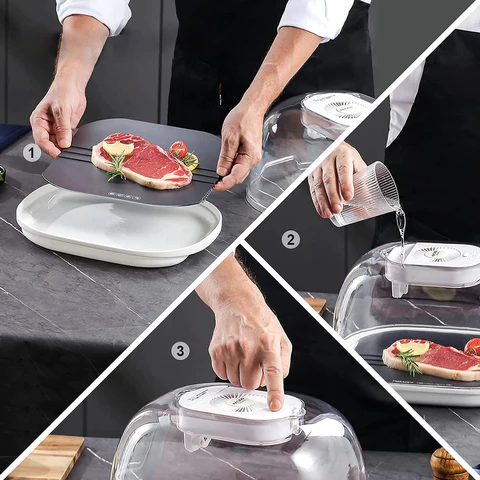 ✓ Provides Convenience - You no longer have to take your meat out of the freezer hours in advance, as this defrosting device effortlessly thaws your food at the very last moment. It also catches the water, so your countertop doesn't get wet during defrosting.