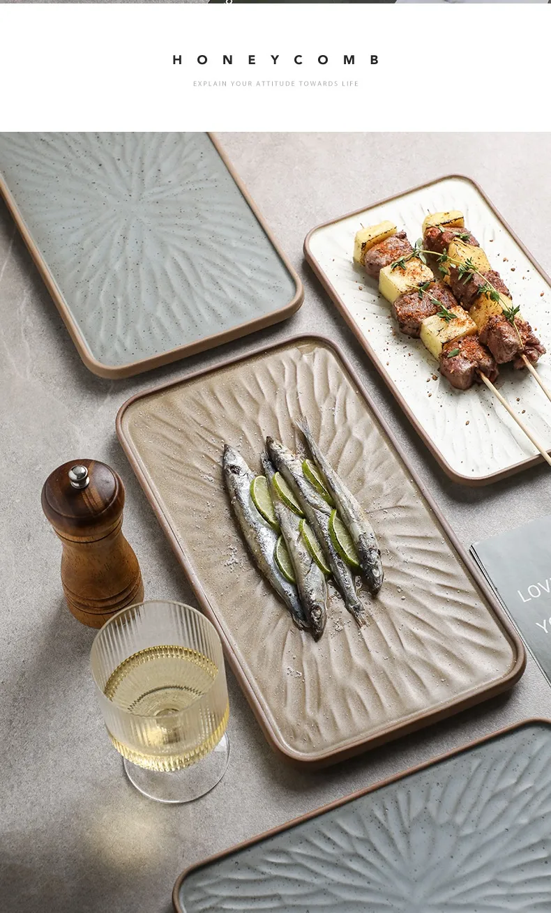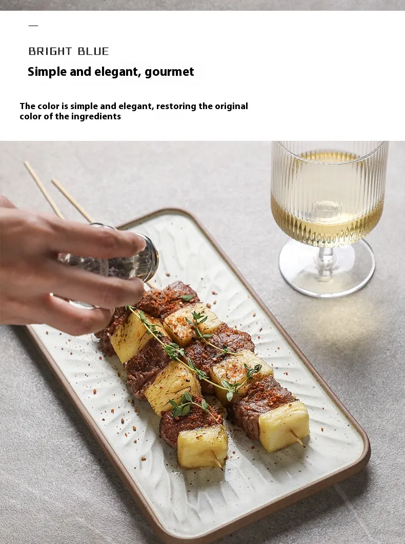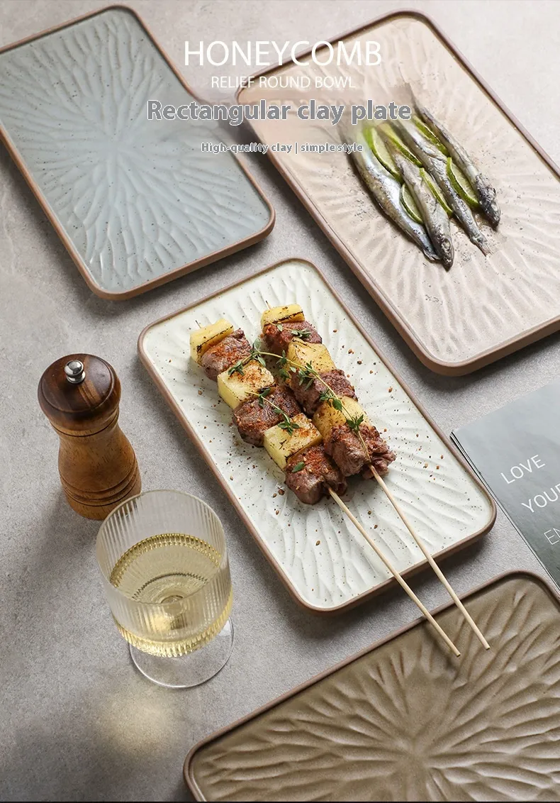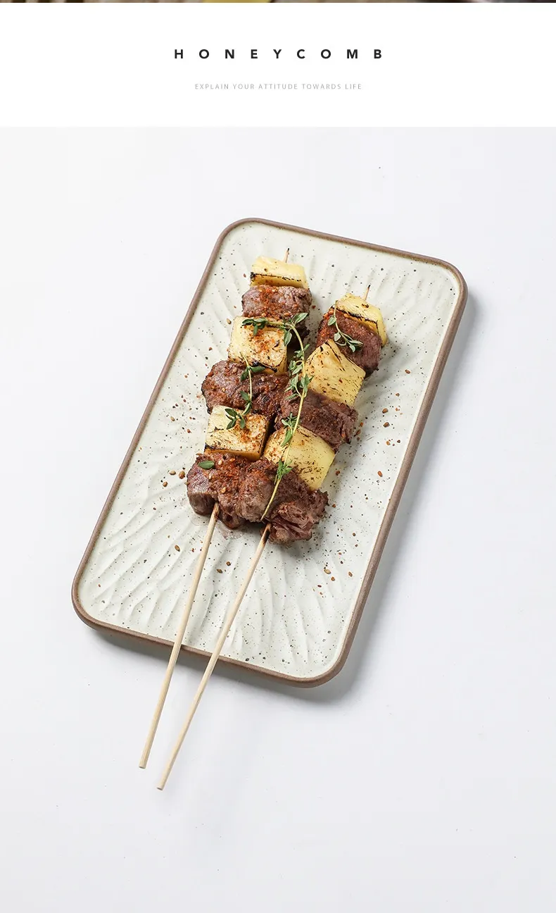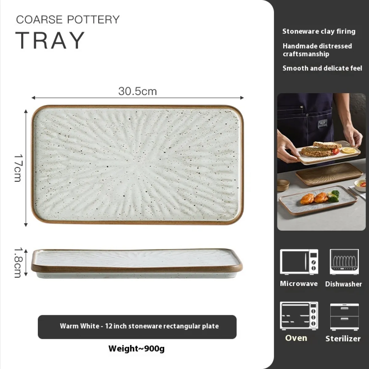 Color: Warm white-12-inch stoneware rectangular flat plate