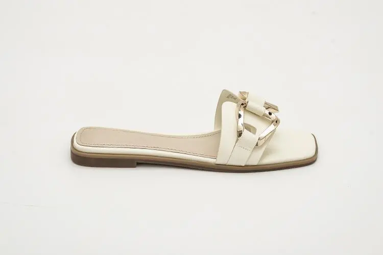 Crafted with a soft, lightweight material, these flat slippers provide a breathable and comfortable fit, making them perfect for the hotter months. The sleek design complements a wide variety of outfits, from casual shorts and dresses to beachwear, allowing you to seamlessly transition from the indoors to the outdoors.