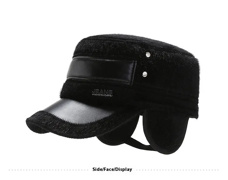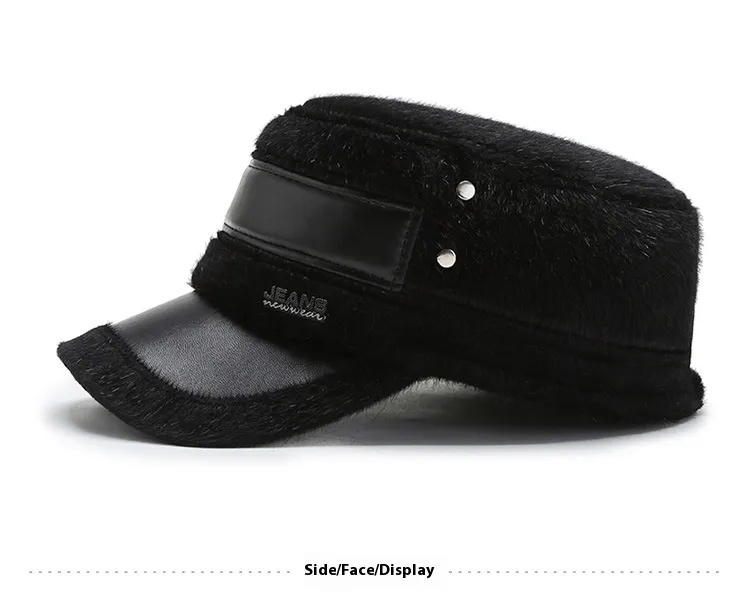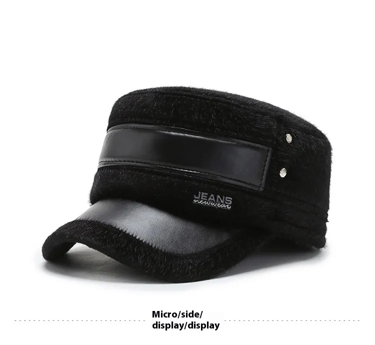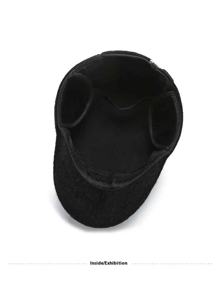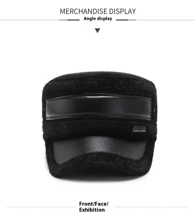 Fleece-lined Earflaps Mink-like Flat-top Cap Leisure Cold-proof Thermal Cotton Hat