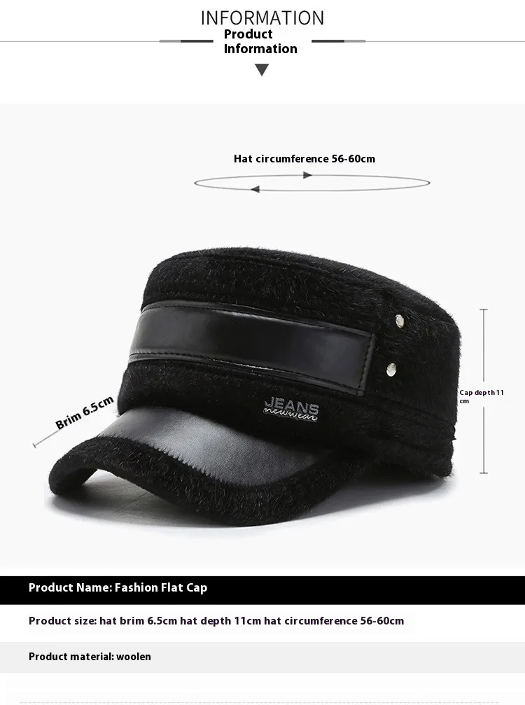 Stay warm and stylish during chilly days with the Fleece-Lined Earflap Flat-Top Cap. Designed with comfort and practicality in mind, this mink-like thermal cotton hat features fleece-lined earflaps for extra warmth and a flat-top design for a sleek, modern look. Perfect for casual outings, outdoor activities, or even commuting in cold weather, this cap combines coziness with timeless style.