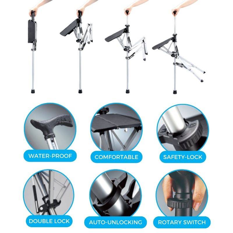 Unleash Mobility and Comfort! Imagine a revolutionary solution that combines convenience, mobility, and comfort all in one compact device. This incredible innovation is designed to seamlessly transition between a sturdy walking cane and a comfortable seat, providing you with unmatched convenience wherever you go.