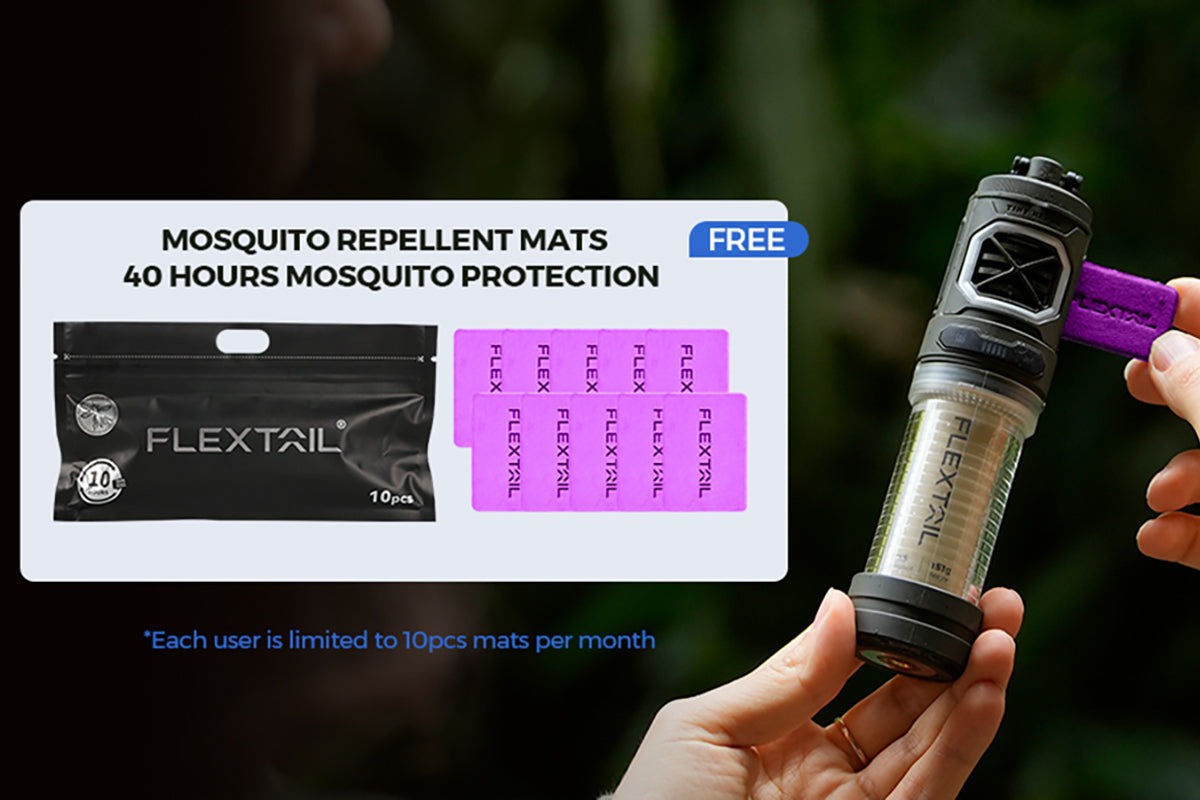 Customers who purchase the FLEXTAIL Mosquito Repellent Device can enjoy an exclusive benefit: the ability to apply for 10pcs mats for free every month. Join the Mosquito-Free Plan today by purchasing the FLEXTAIL Mosquito Repellent Device, and ensure a mosquito-free environment for you and your family all year round, whether outdoors or at home.