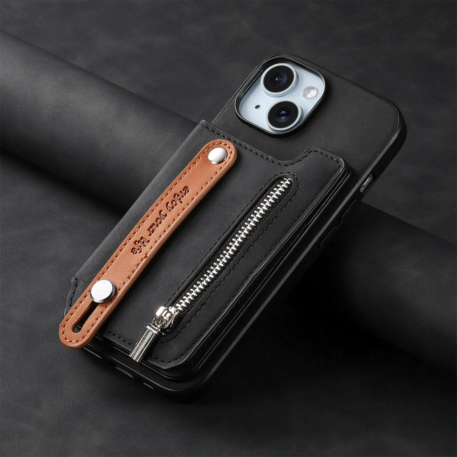Despite its storage capabilities, the case remains slim and lightweight, offering a comfortable grip and easy handling. The ergonomic design ensures your phone fits securely in your hand or pocket while showcasing a sophisticated wallet-style aesthetic.