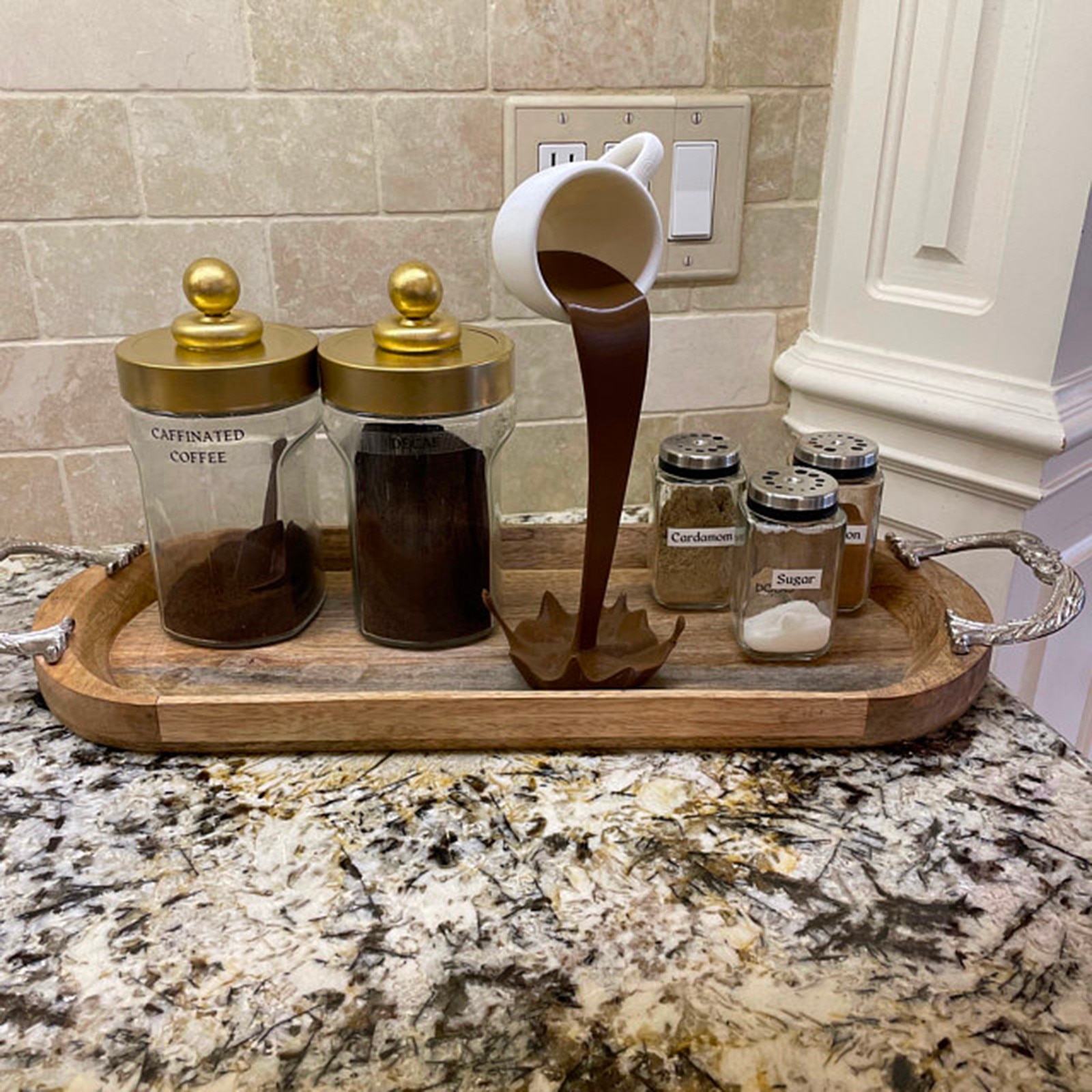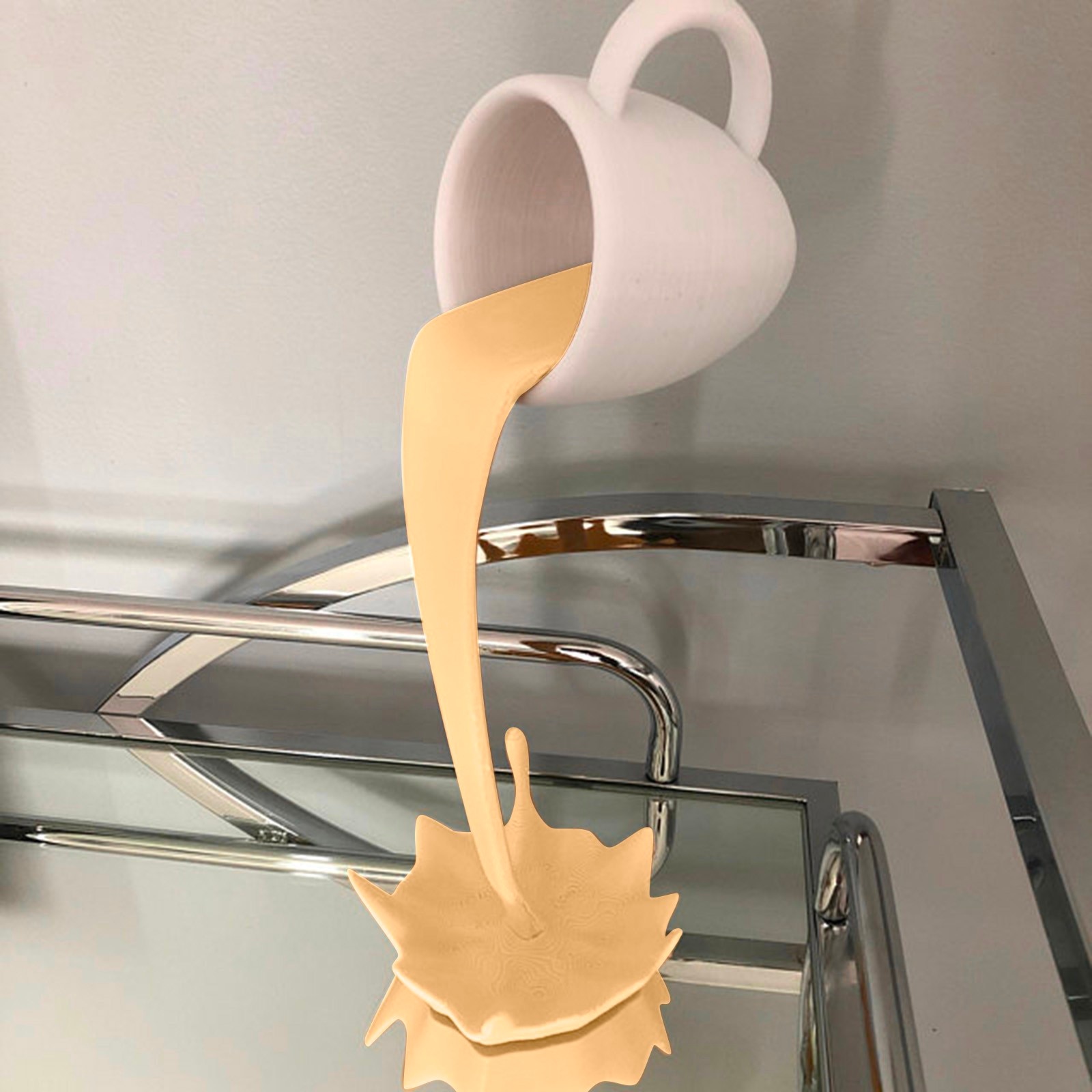 Bring an artistic touch to your kitchen with our Floating Coffee Cup Sculpture. This eye-catching piece features a mesmerizing pouring and spilling effect, making it a perfect conversation starter and a unique addition to any kitchen decor.