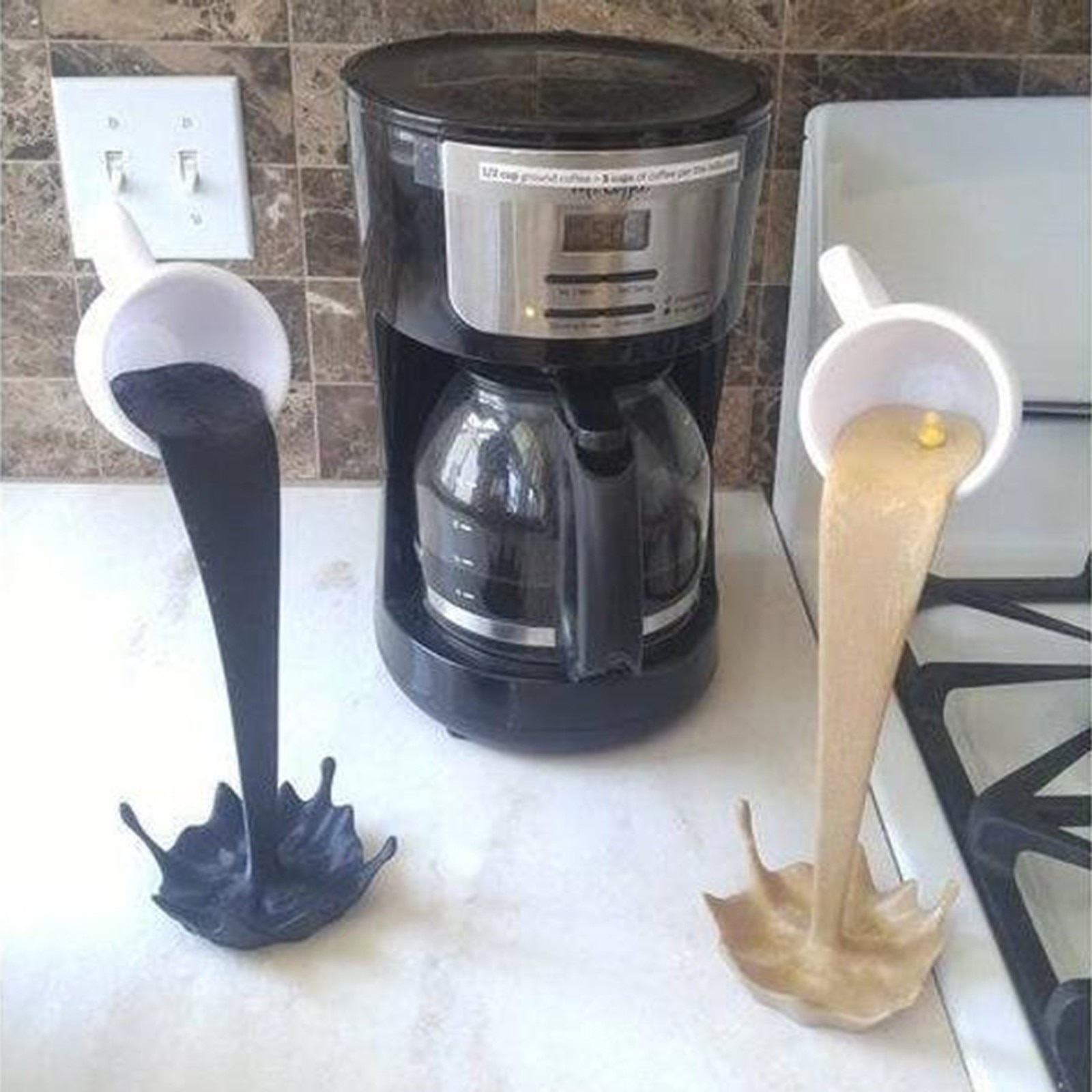 Floating Coffee Cup Sculpture Pouring Spilling Decoration