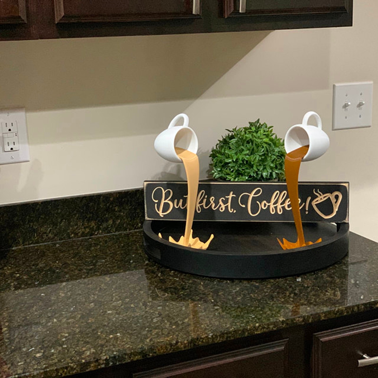 - 【Novel Design Features】 tilted coffee cups, suspended designs, and poured coffee form this characteristic decorative coffee cup sculpture,Let you be surprised by its special shape