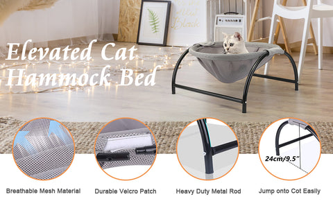 - Our cat hammock is supported by four strong and durable iron frames, while adding four silicone anti-scratch feet at the bottom.