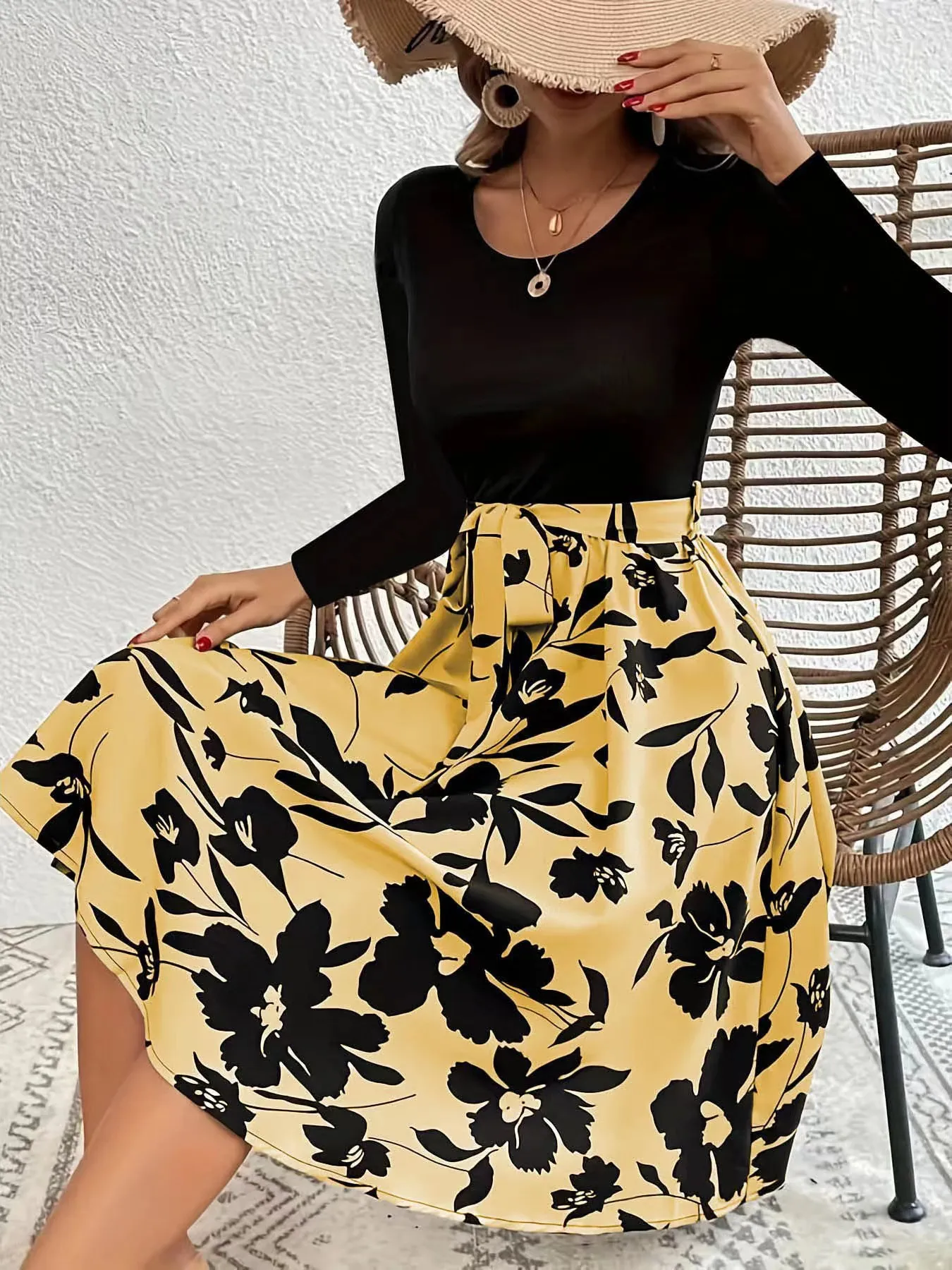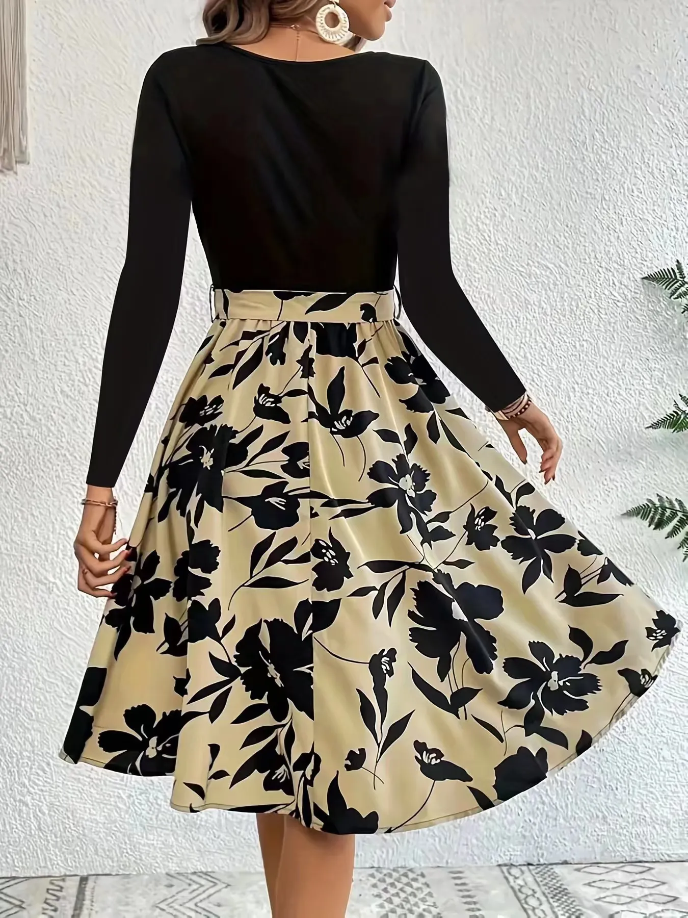 Home › Plants, Gifts, Toys & More › Gift-tree-floral-print-long-sleeve-dress-fashion-round-neck-tie-slim-dress-womens-clothing