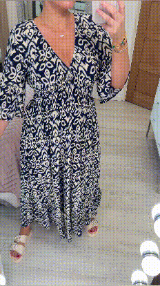 Its flattering V-neck complements the airy short sleeves, creating an effortlessly chic silhouette. Whether you're heading out for a brunch, a day out in the city, or a relaxed evening with friends, this dress will ensure you radiate casual elegance wherever you go.