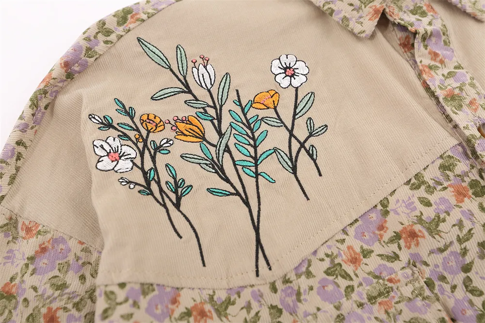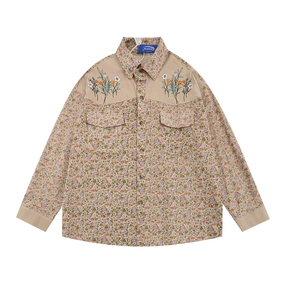 Floral Shirt Men's Loose Casual Long Sleeves Cardigan Stitching Embroidered Lapel Coat