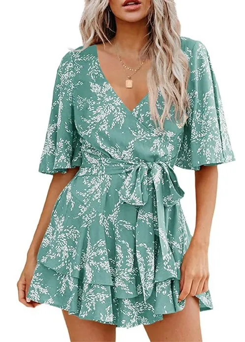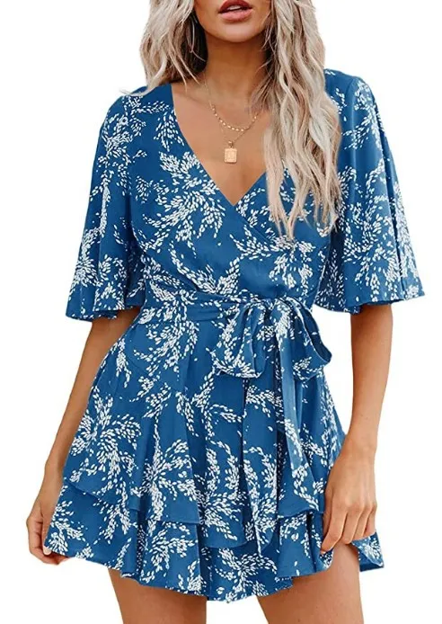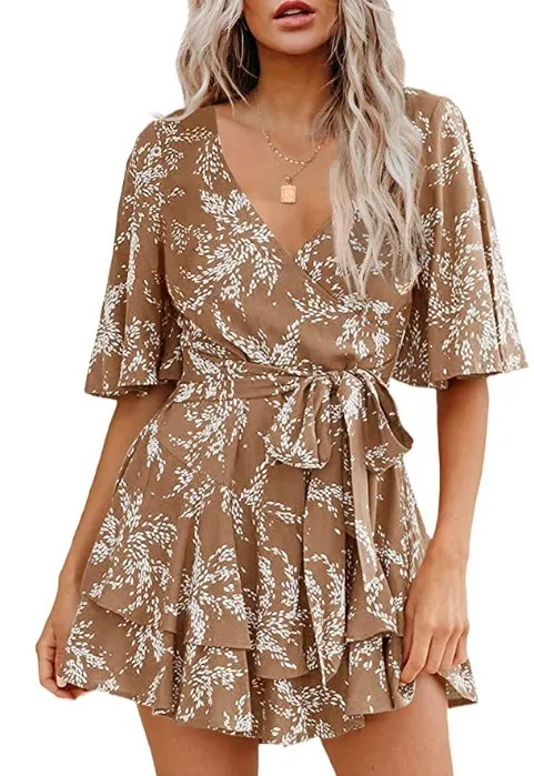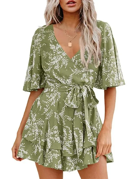 Home › Plants, Gifts, Toys & More › Gift-tree-floral-v-neck-flare-sleeve-waist-belt-layer-pleated-dress