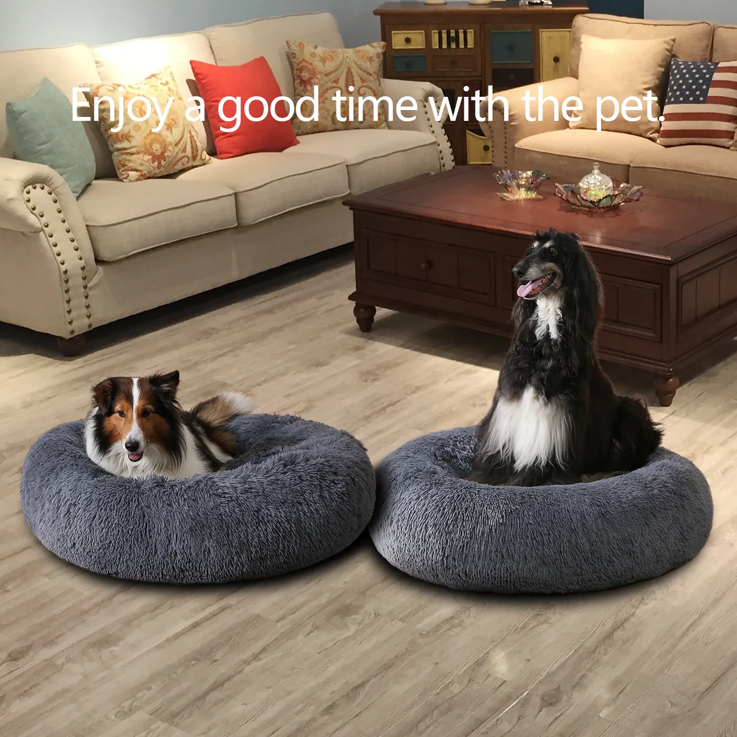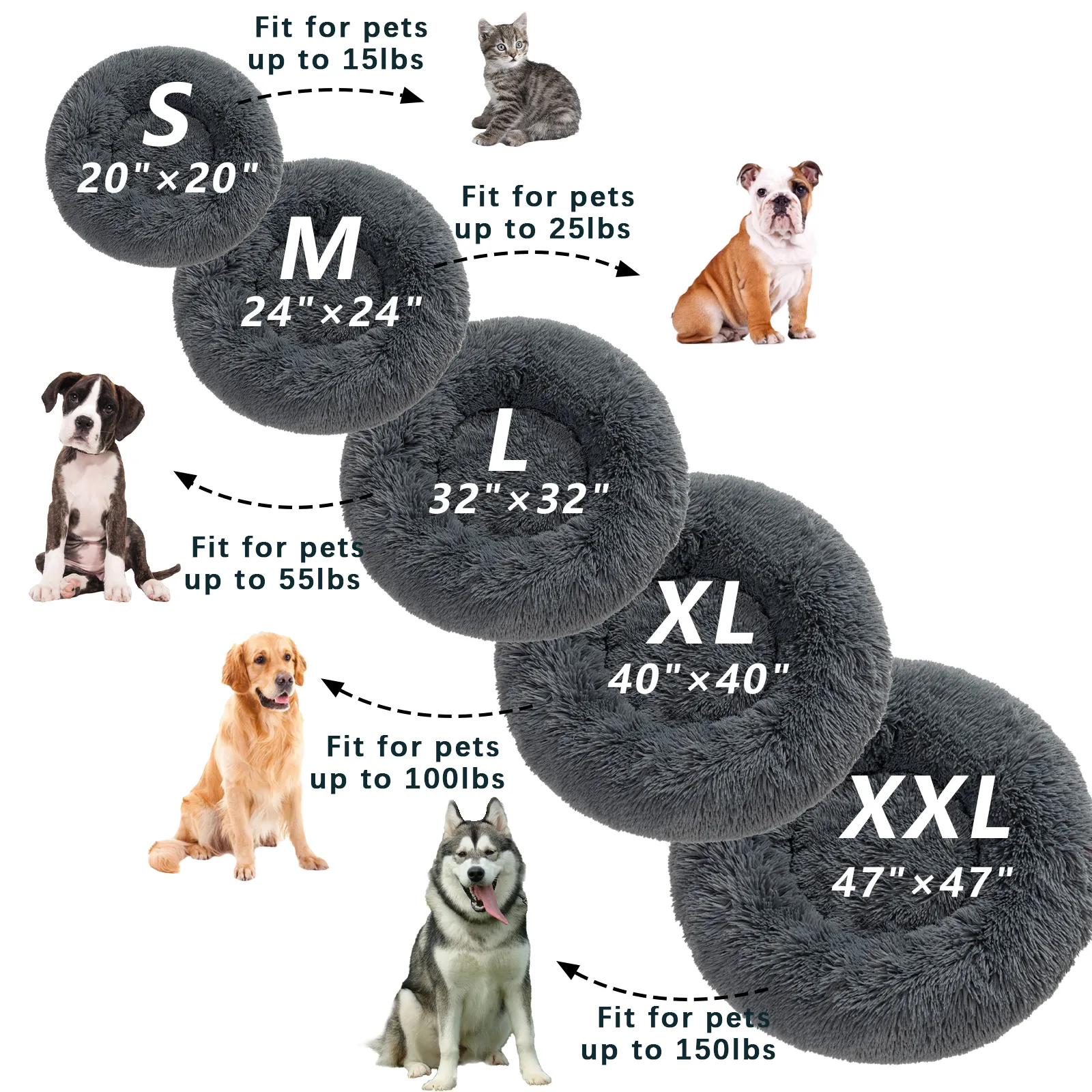 Fluffy Donut Dog Bed Xxl Warm Soft Long Plush Pet Cushion Dog House Cat Bed Washable Pet Sofa Mat Calming Samll Large Dog Beds