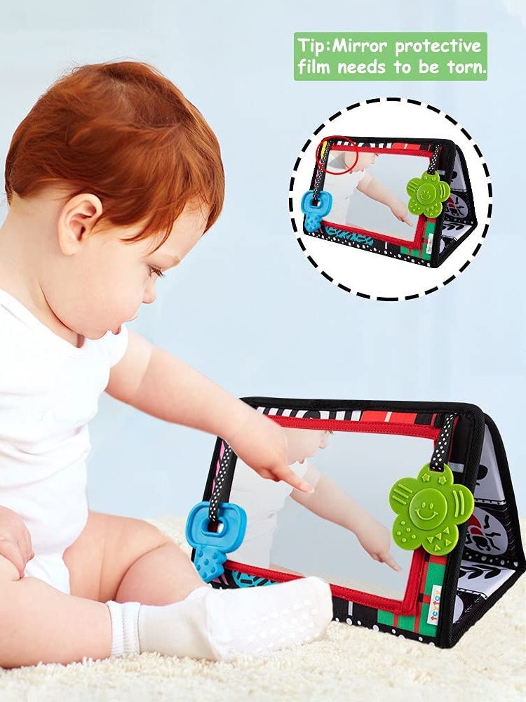 - ★ Newborn Toys for Explore the World - Encourage your baby to explore his own face, body and the surrounding objects, which make your little angel's tummy time become more interesting and active. Great infant toys 0-3 3-6 months, 4 month old toys for babies, baby toys 6 9 12 months, ideal baby shower gifts. Any problem you encounter, please contact with our customer service.【NOTE: There is a protective film on the mirror, please remove it before using it to make the reflection clearer.】