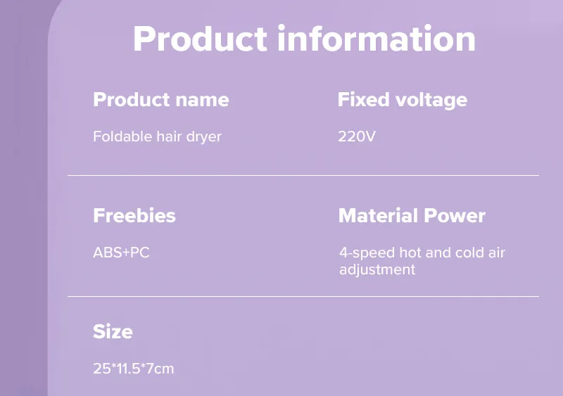 The Foldable Hair Dryer Blower offers the perfect combination of performance, convenience, and style for anyone on the go. Whether you need quick drying at home, smooth styling, or a travel-friendly option, this mini hair dryer provides all the features you need for an efficient and professional-grade experience. With negative ion technology, multiple settings, and a compact design, this hair dryer helps you look and feel your best, no matter where you are.