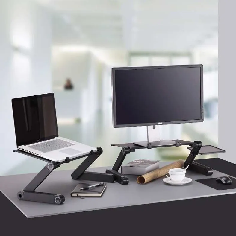 This is a portable multifunctional foldable computer desk, which can be placed on the desk as a standing desk, on the bed or wherever you