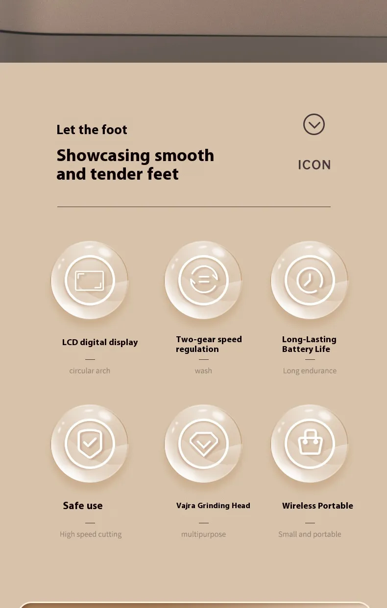 LED Lighting and Power Display: Considering the diversity of usage scenarios, some electric foot grinders are equipped with LED lights. In low-light environments, such as using them in the bedroom or bathroom at night, they can provide sufficient illumination to ensure the accuracy and safety of operation. Meanwhile, the power display allows users to check the device's power at any time, avoiding the embarrassment of sudden power failure during use.