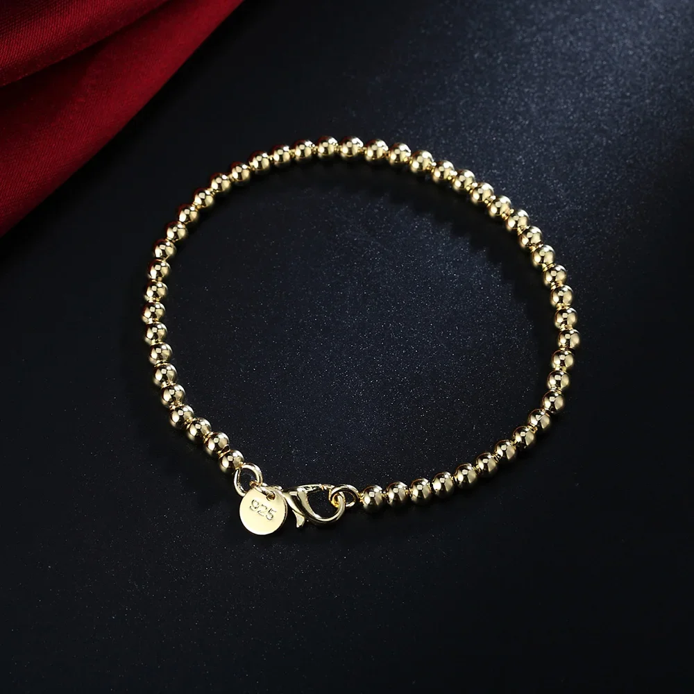Why Choose the 925 Sterling Silver 4mm Bead Gold Color Chain Bracelet?