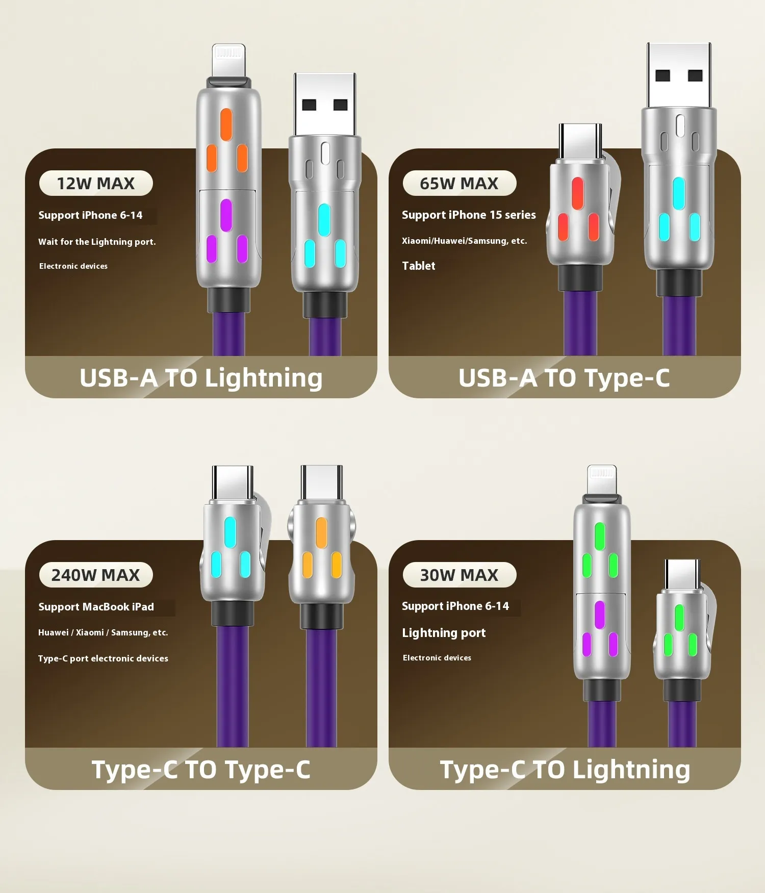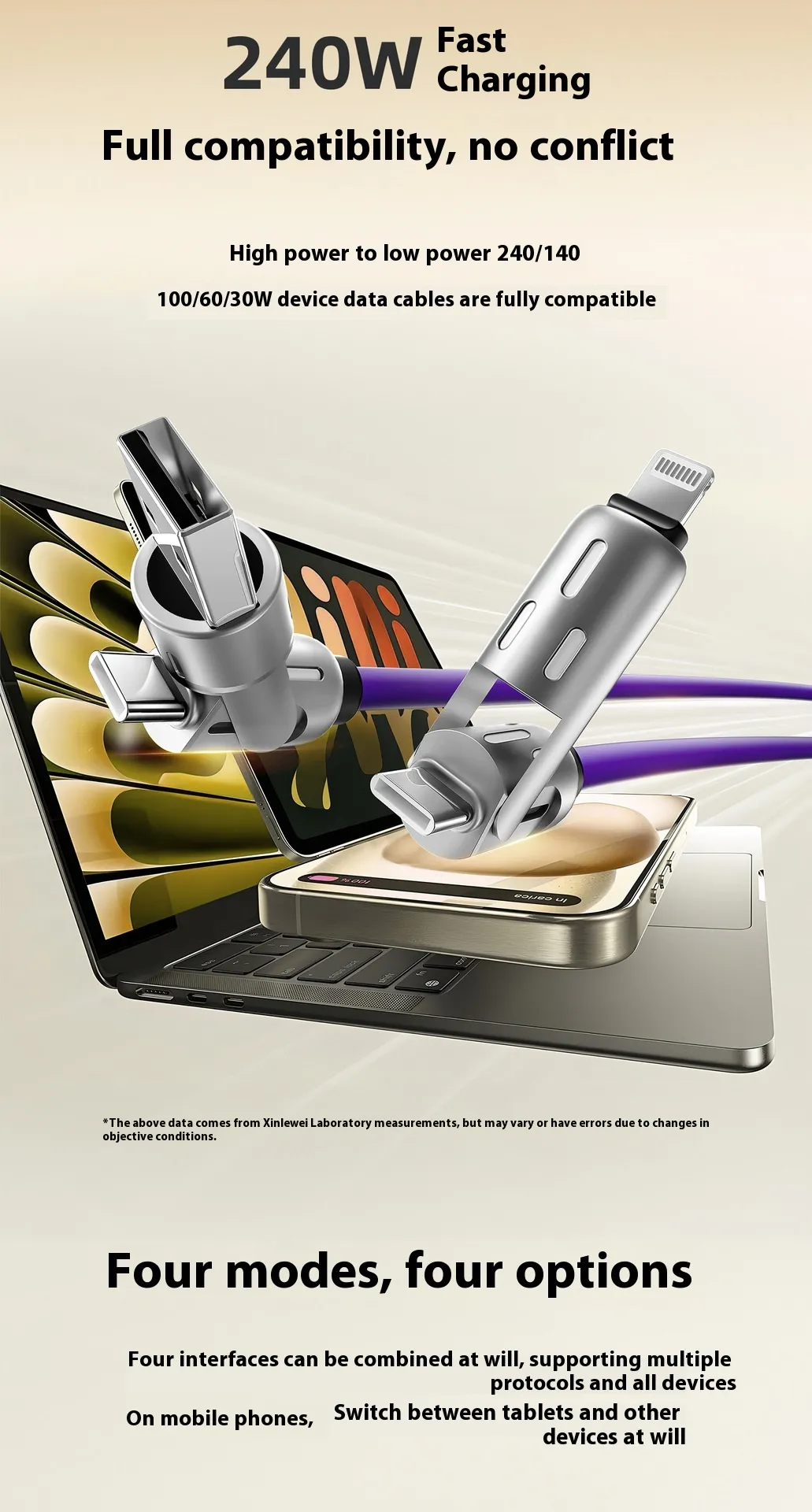 Four-in-one Fast Charge Data Cable – TPC Light Column Silicone Charging