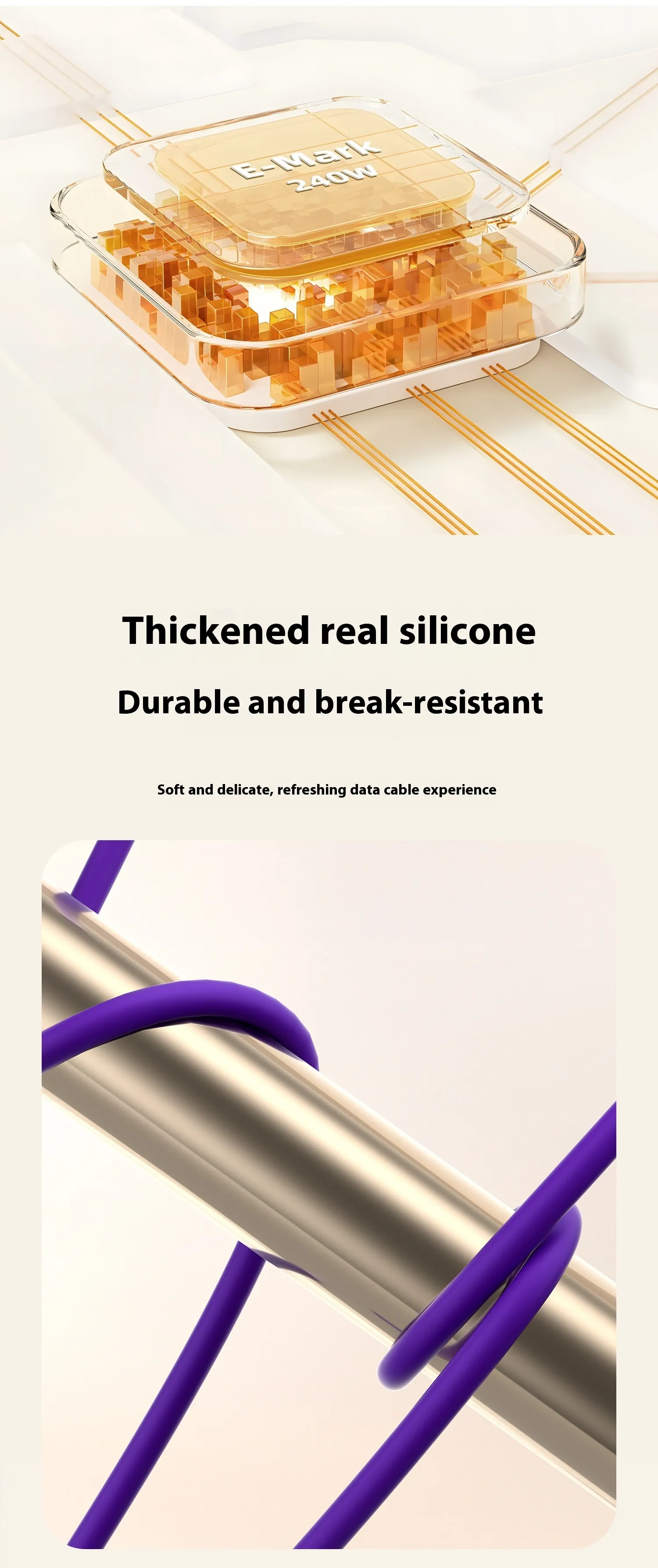Built with high-quality silicone material and a TPC light column design, this cable not only supports fast charging but also provides tangle resistance and long-lasting durability. Whether at home, in the office, or on the go, it ensures a stable and efficient charging experience without slowing you down.